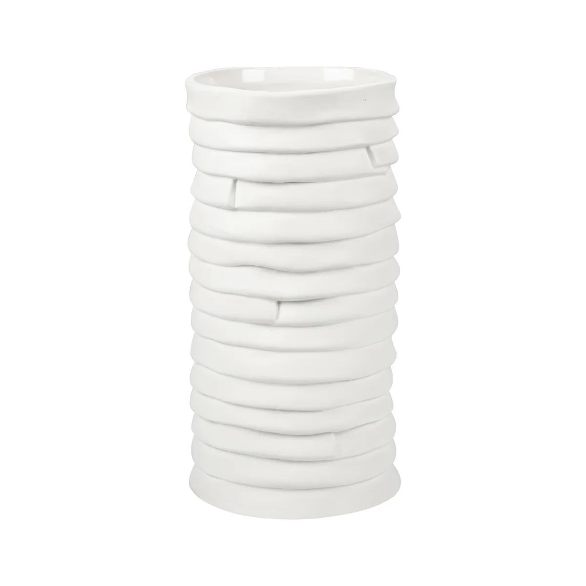 The Ribbon vase from Mette Ditmer has a stylish and timeless look that is expressed in the molded ceramic. Handcrafted, the vase presents a textured yet organic look that can fit into any home decor. The surface is unglazed, creating a contrast with the glossy interior. The vase can be used all year round and is wonderful for holiday decorations.