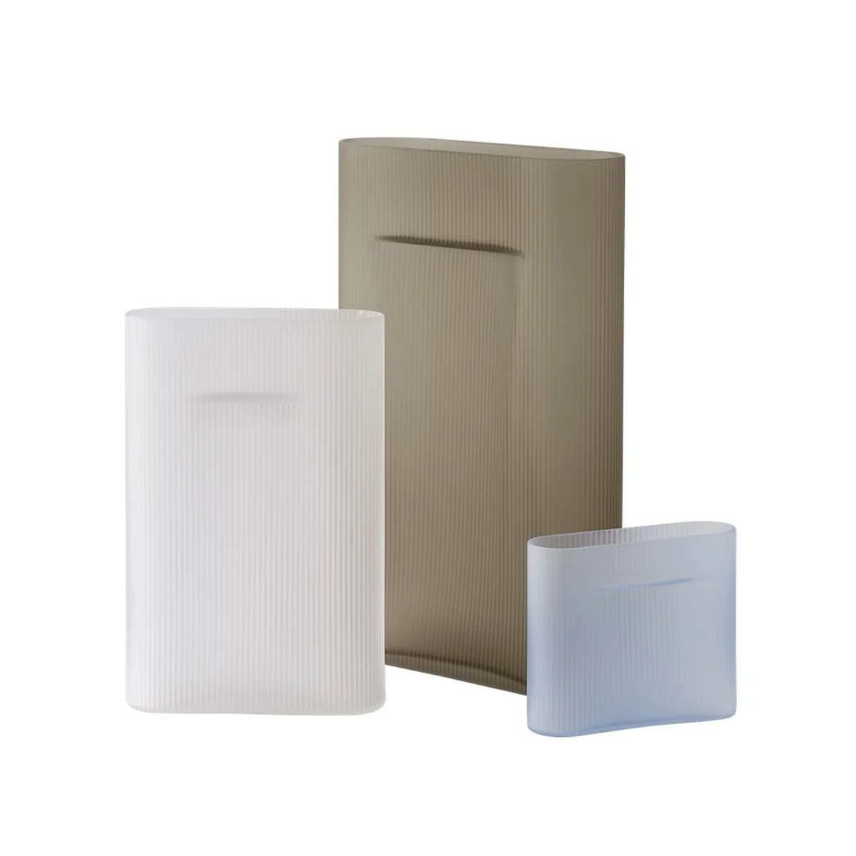 The Ridge vases are made of glass and are available in various designs and colors. They are not dishwasher safe and should be cleaned by hand.