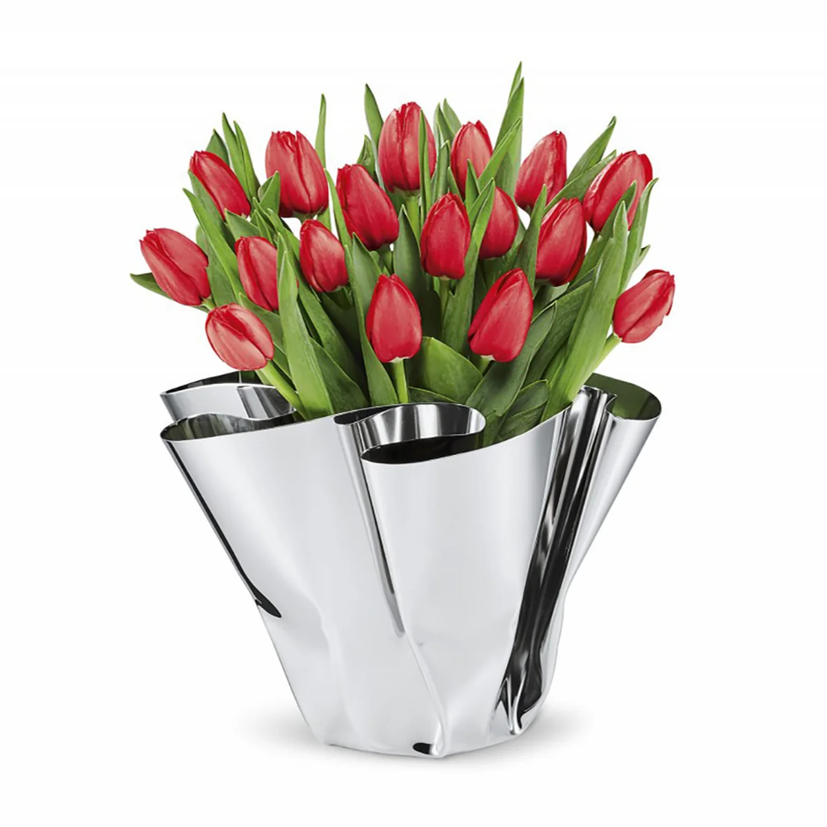 The Margeaux Vase by Philippi is made of stainless steel and is characterized by its sweeping shape. Like a theatre curtain, the material is pleated and thus looks particularly noble.