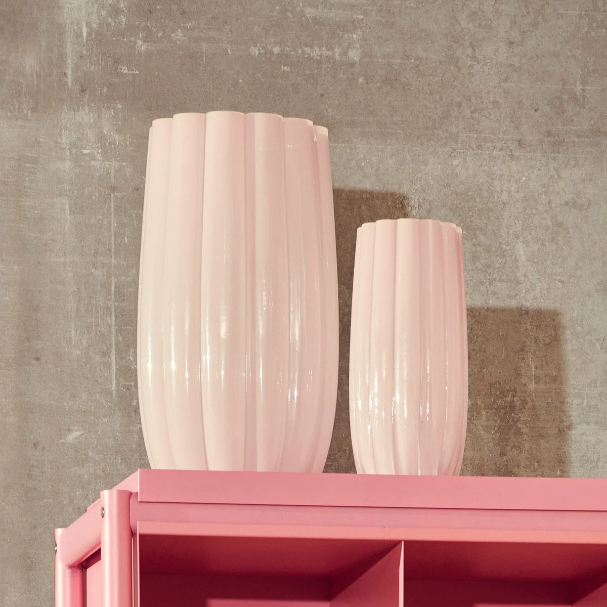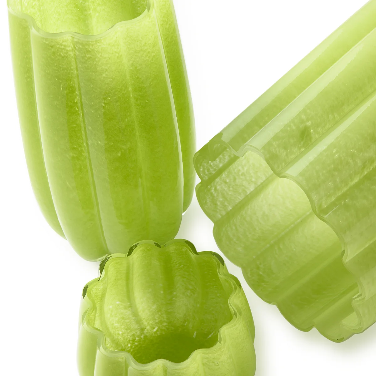 The Melon Vase from Pols Potten inspires with its rounded shape and fresh colors. Melon Was developed in collaboration with florists, but the vase made of glass looks exceedingly artistic even without flower arrangements. The fluted outside of the vase reminds with its design of traditional terracotta pots.