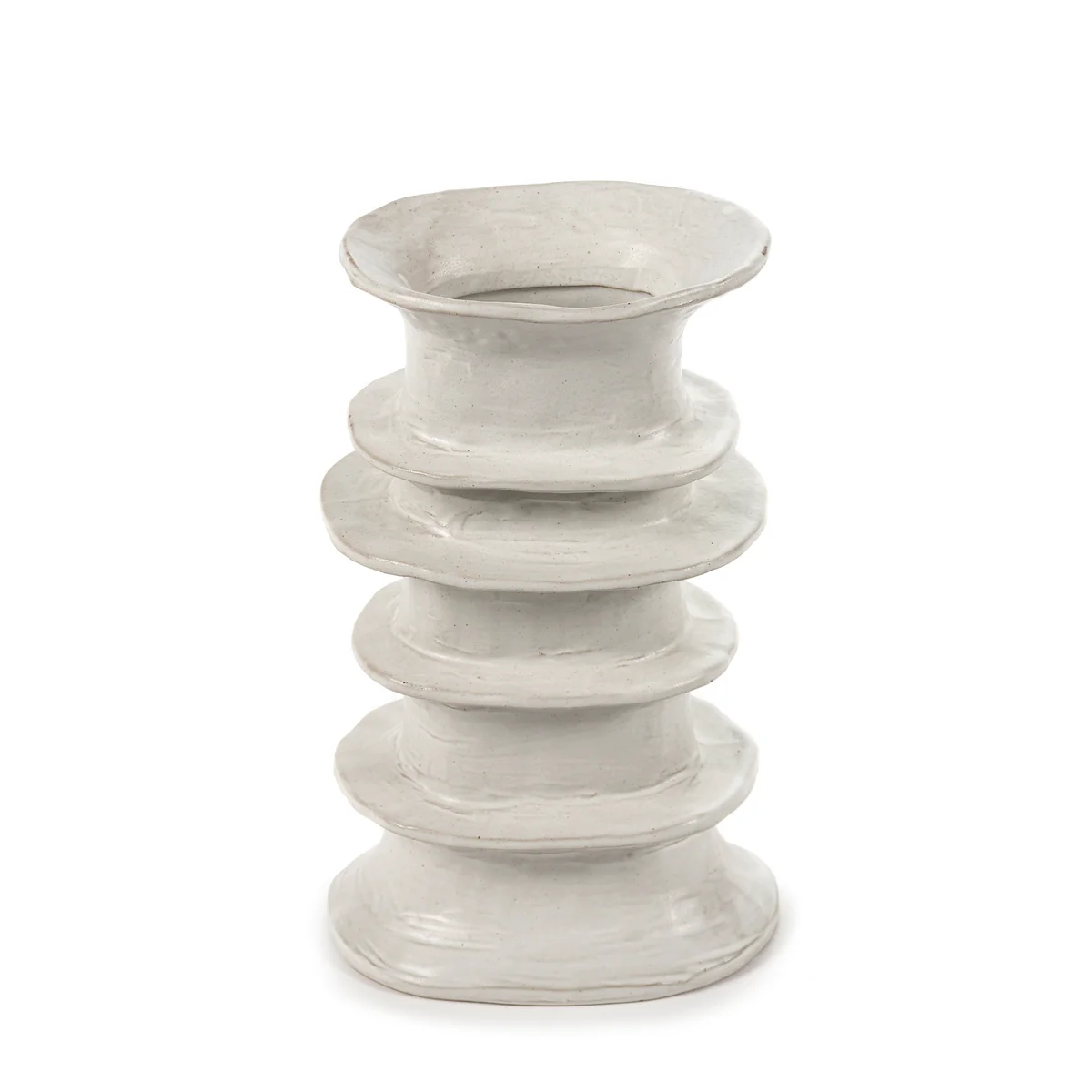 The Billy vase from Serax combines art and craftsmanship in a unique design. Each vase is modeled by hand and impresses with its timeless, off-white color and soft, organic shapes. This harmonious interplay gives the vase a calming and stylish appearance that blends perfectly into modern and classic living spaces.