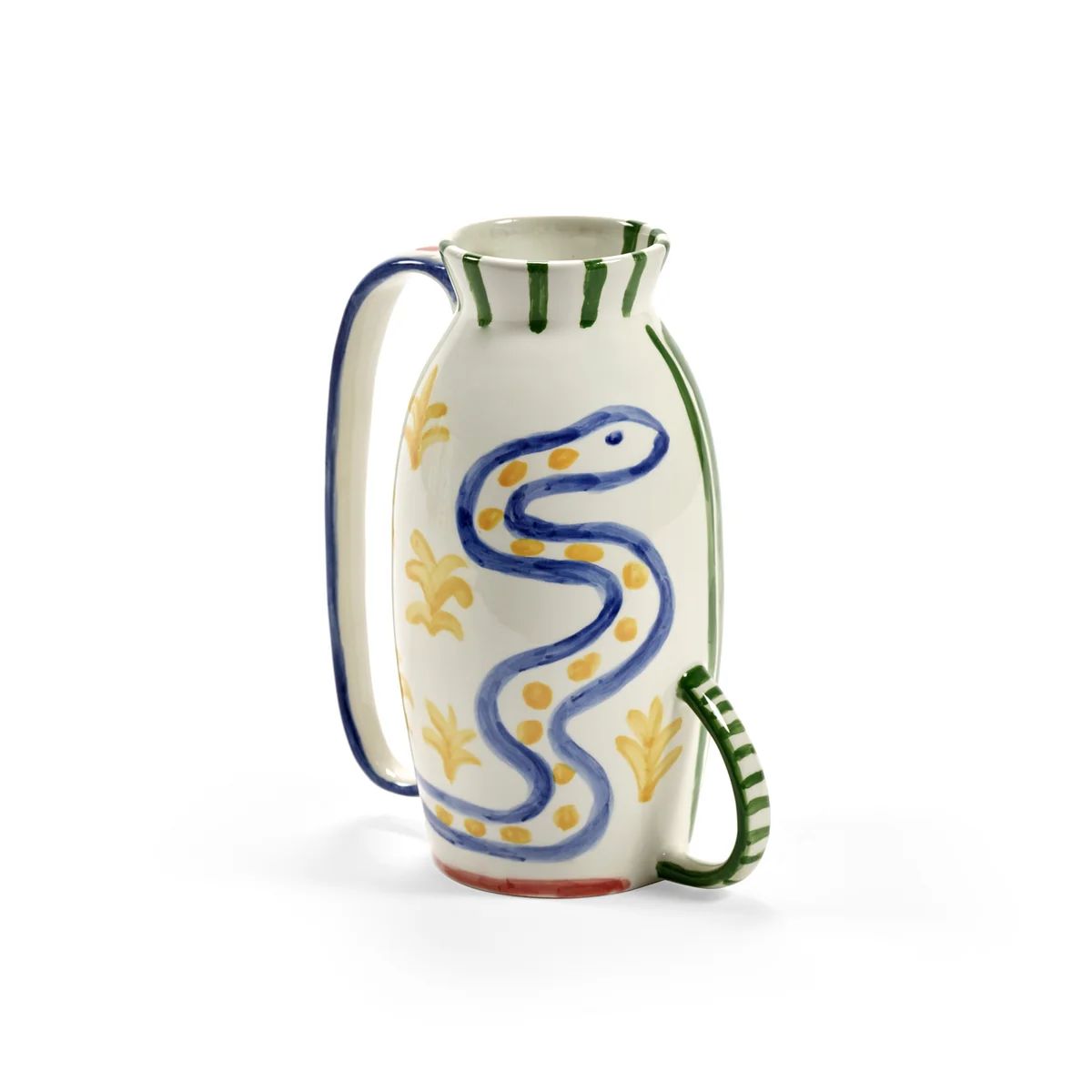The Cocona vase from the Santiago de Borja collection by Shirley Villavicencio Pizango transforms the artist's vibrant ceramics into a decorative highlight. Each hand-painted piece features bold colors and organic shapes inspired by the lush nature of the Amazon. With its unique character, the vase brings warmth, depth and artistic expressiveness to any interior.