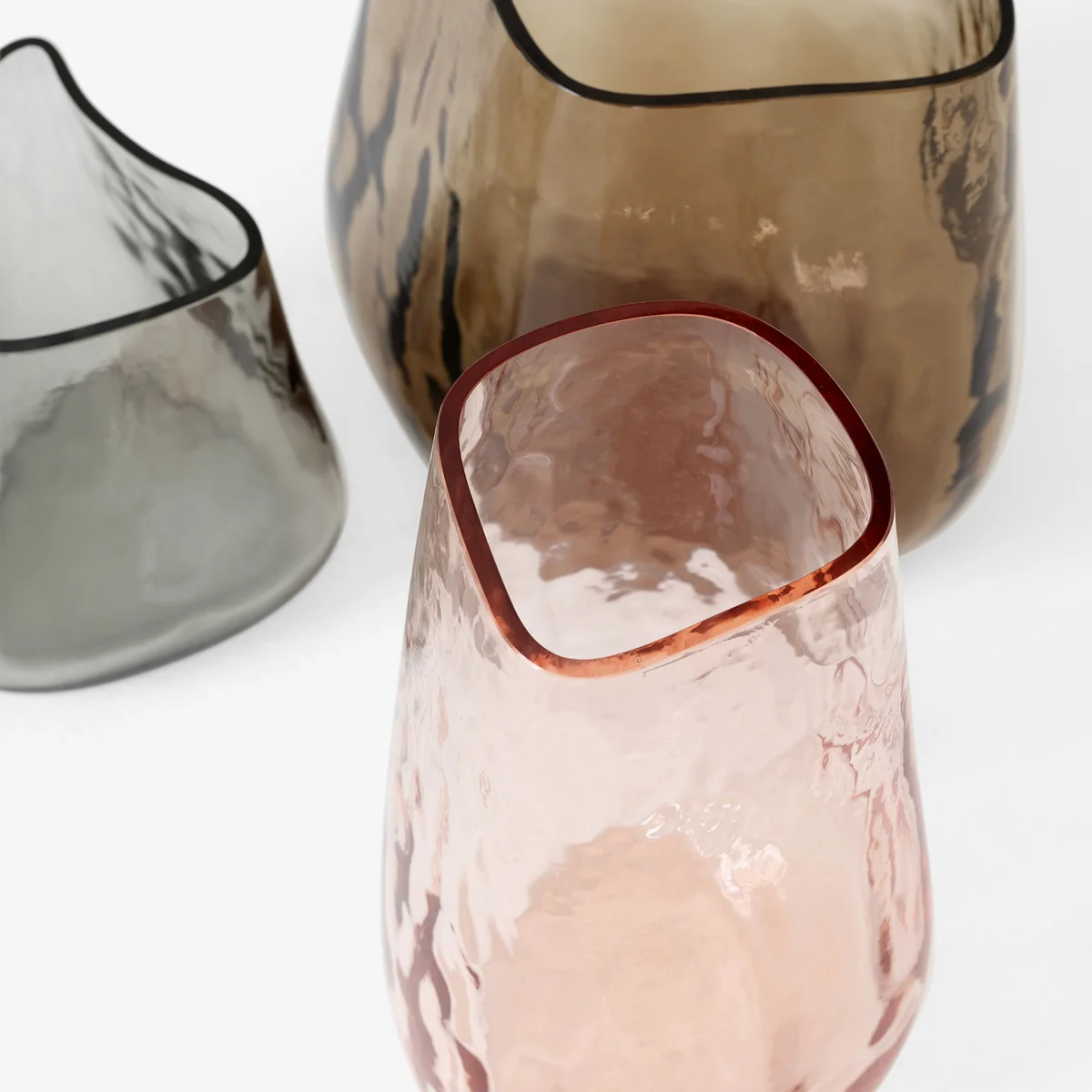 Made from hand blown glass, the vase is then carefully cut to create a straight edge at the top. This contrasts in an interesting way with the organic shape of the vase.