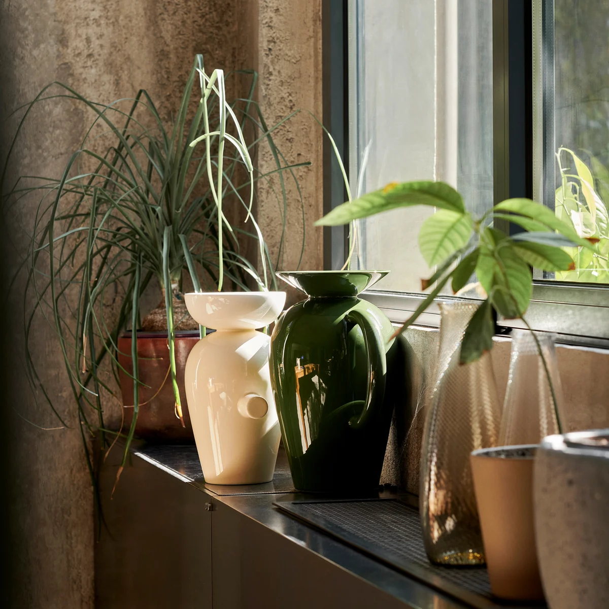 The Momento vase from the Danish house & Tradition Has a strong, playful identity. The iconic shape adorned in bold or simple colors, making it wonderfully individual to the living environment. The sleek design can be used individually in focus or combined with flower arrangements.
