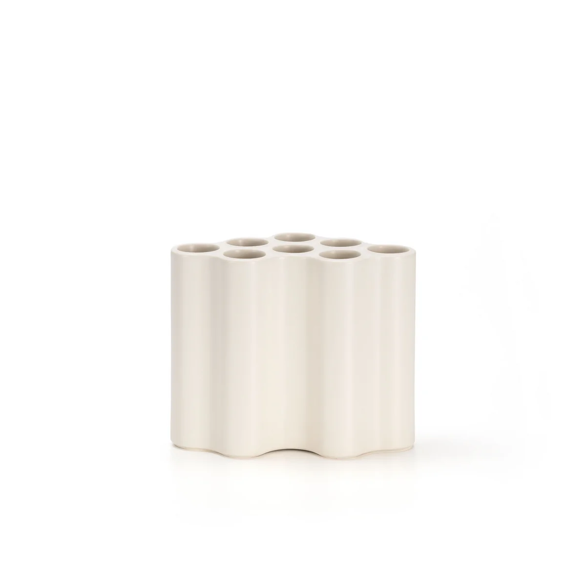 The shape of the Nuage vases can already be found in the records of the brothers Ronan and Erwan Bouroullec in 2002. Thanks to its unusual tubular shape, the anodised aluminium version has become an integral part of the Vitra range. Now the Swiss manufacturer presents the popular ceramic accessory. Each of the vases is a unique specimen and sets unique accents on the home windowsill or sideboard.