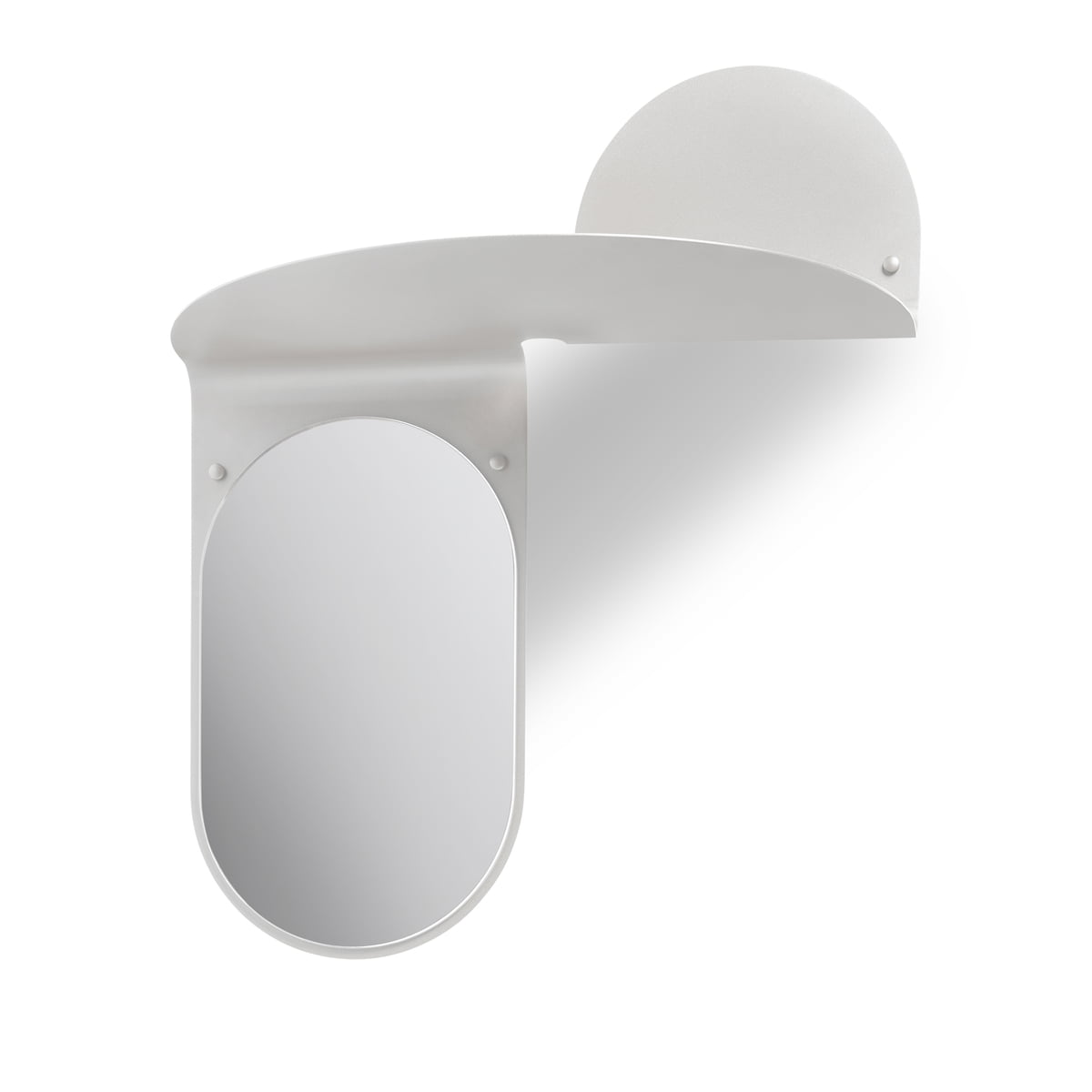 The Flip mirror impresses with its harmonious interplay of flowing lines and clear shapes. Made of powder-coated metal, its partially curved shape not only offers a stylish mirror surface, but also an integrated shelf. Thanks to the versatile alignment options, the mirror can be positioned horizontally or vertically depending on your needs and personal style - perfect for hallways, bedrooms or bathrooms.