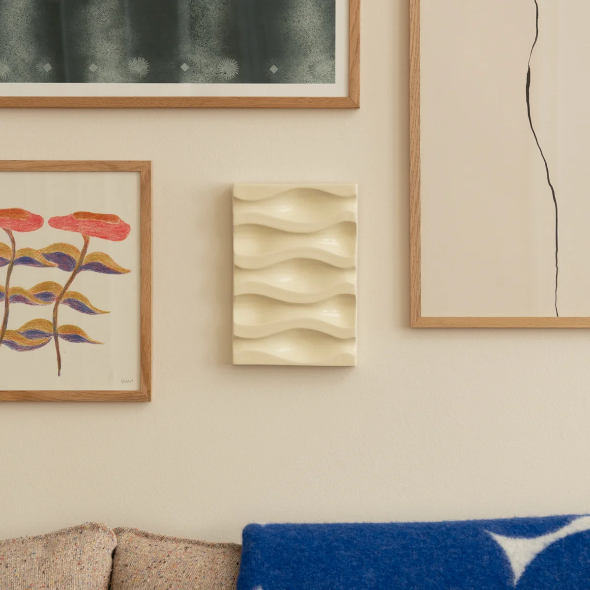 The Echo Relief wall decoration by Another Art Project for The Poster Club is a work of art handcrafted in Portugal that translates the ephemeral beauty of sound into a tangible form. Inspired by reverberating sound waves, the design transforms their soft movement into a sculptural ceramic relief.