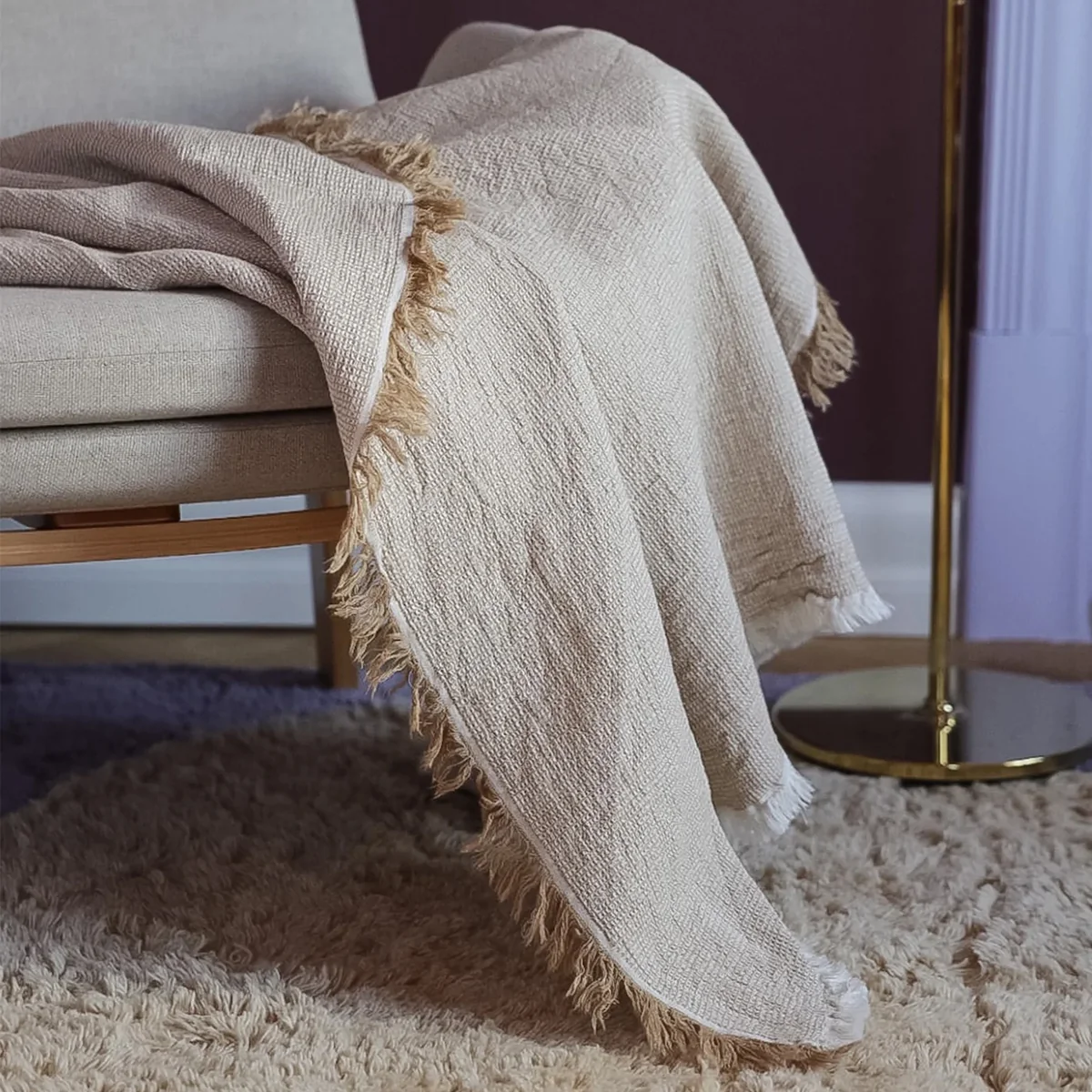 The Daisy blanket from Elvang presents a homely and timeless aesthetic, which is rounded off by the fringes. The fringes have two different colors on both sides. The blanket can be used to enhance cozy and cozy evenings - whether in the living room or in the garden. Made from 80% organic cotton and 20% linen, the blanket is particularly sustainable and therefore has a special value. The Daisy blanket from Elvang is available in different designs.