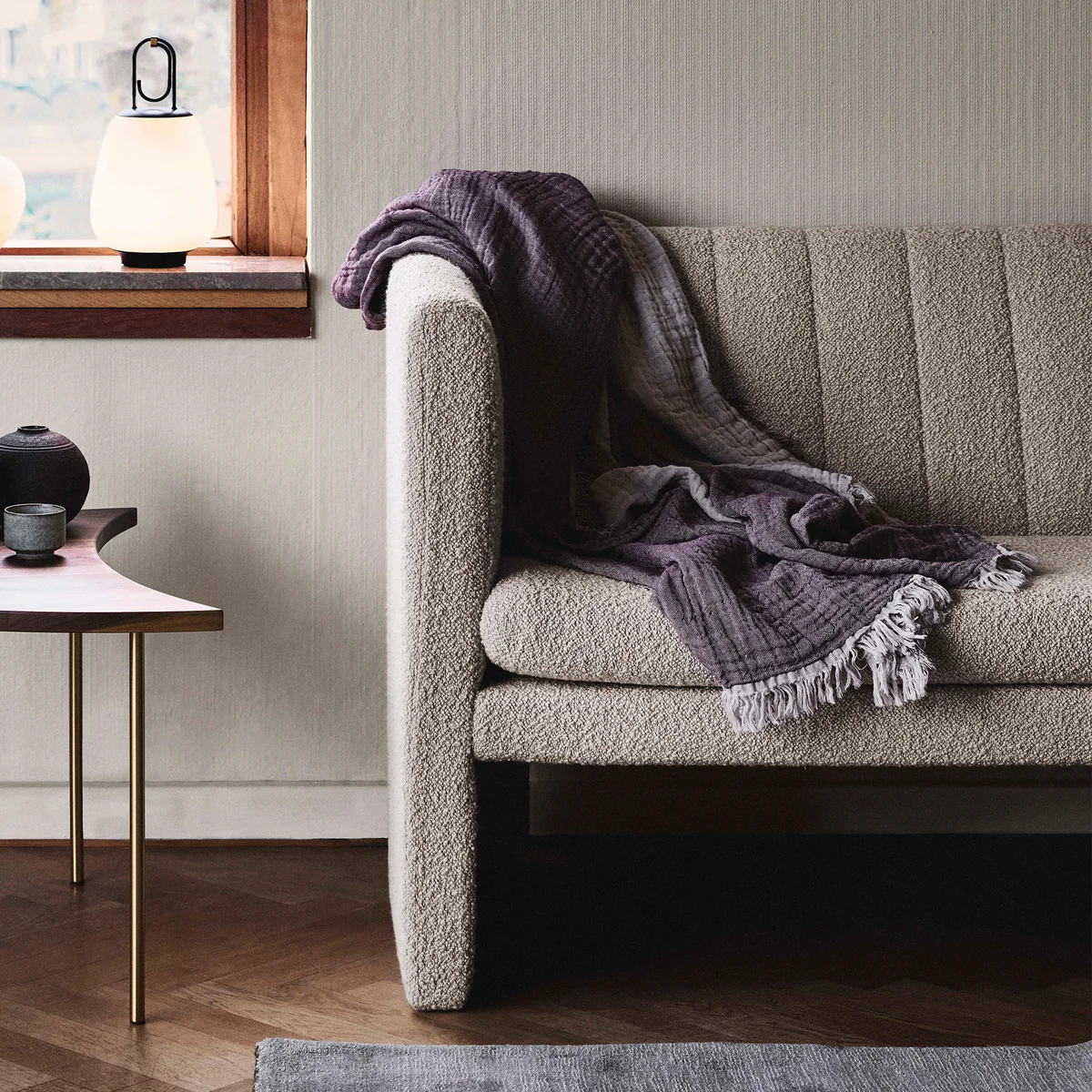 The Collect SC32 blanket is part of & Tradition Collect, a curated series of handmade home furnishings and soft objects. Designed by Space Copenhagen, the blanket is made from 100% organic cotton and consists of 3 layers of finely woven cotton finished with coarse, semi-twisted fringes on all sides.