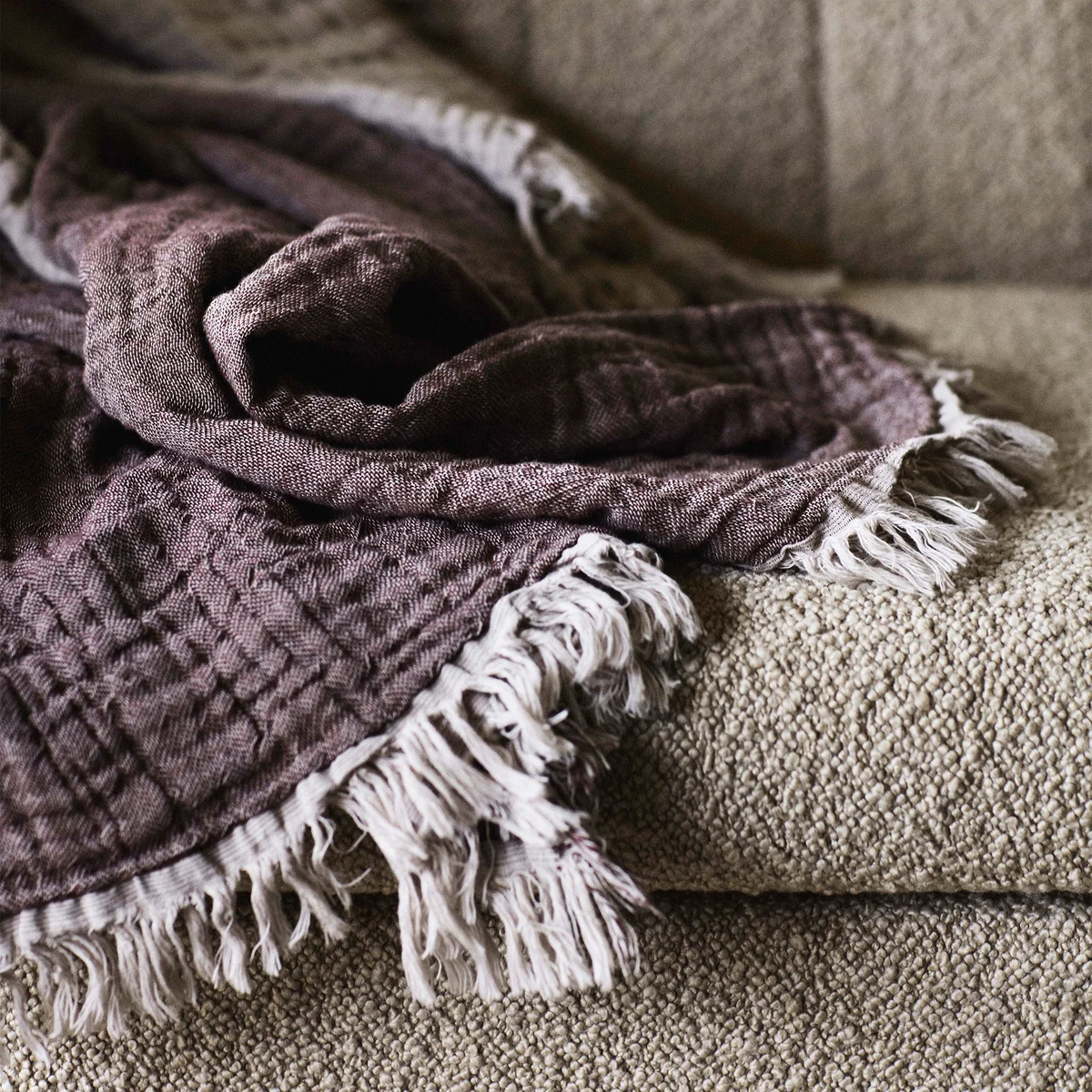 The layers are connected by a narrow seam that gives the fabric a crinkled effect that creates a unique pattern. The blanket is available with front and back layers in different colors. Thus, the blanket always brings a breath of fresh air on the bed or sofa.