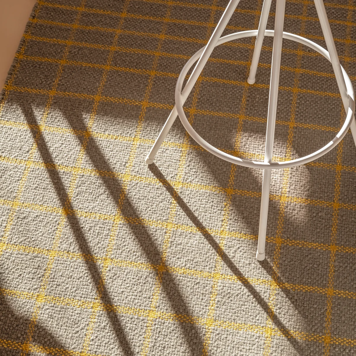 The carpets of the Tiles collection are hand-woven in the Dhurrie technique and are made of 100% recycled PET produced in India. They can be wonderfully placed in the kitchen, bathroom or even outdoors. The material is extremely durable, but at the same time easy to clean. It also has great thermal properties. By using sustainable material, which is made by recovering and reusing polyethylene waste, the impact of burning plastic bottles in India is minimized.