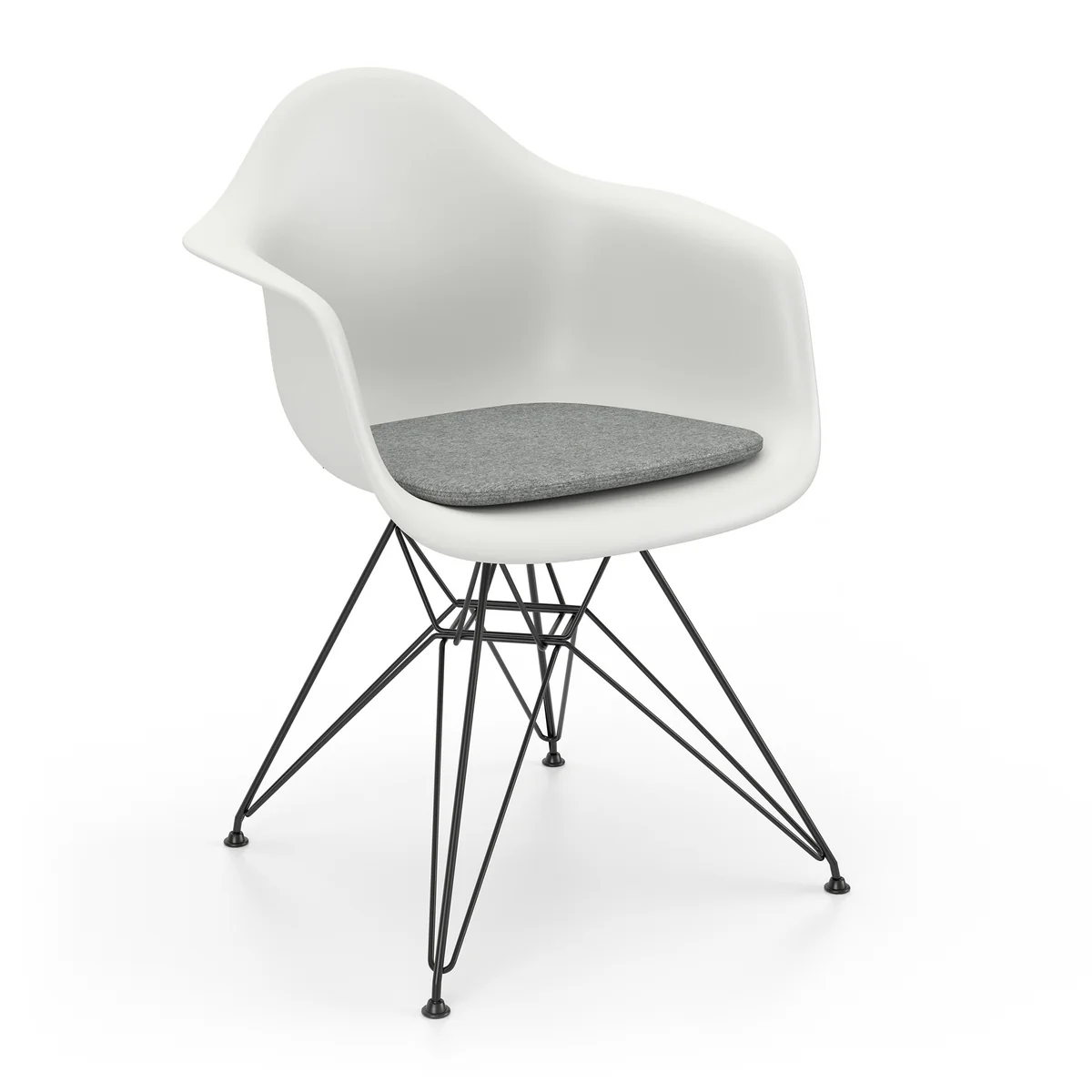 The Soft Seats Seat cushions of the Swiss manufacturer Vitra offer maximum comfort during daily sitting. Depending on the type, the individual seat cushions are suitable for different Vitra chairs. They are made of a material mix of virgin wool and polyamide. The filling consists of a recyclable polyester thermal fleece. The cover can be removed if necessary and can be dry cleaned afterwards. Each seat cushion is equipped with a black zipper and anti-slip coating.