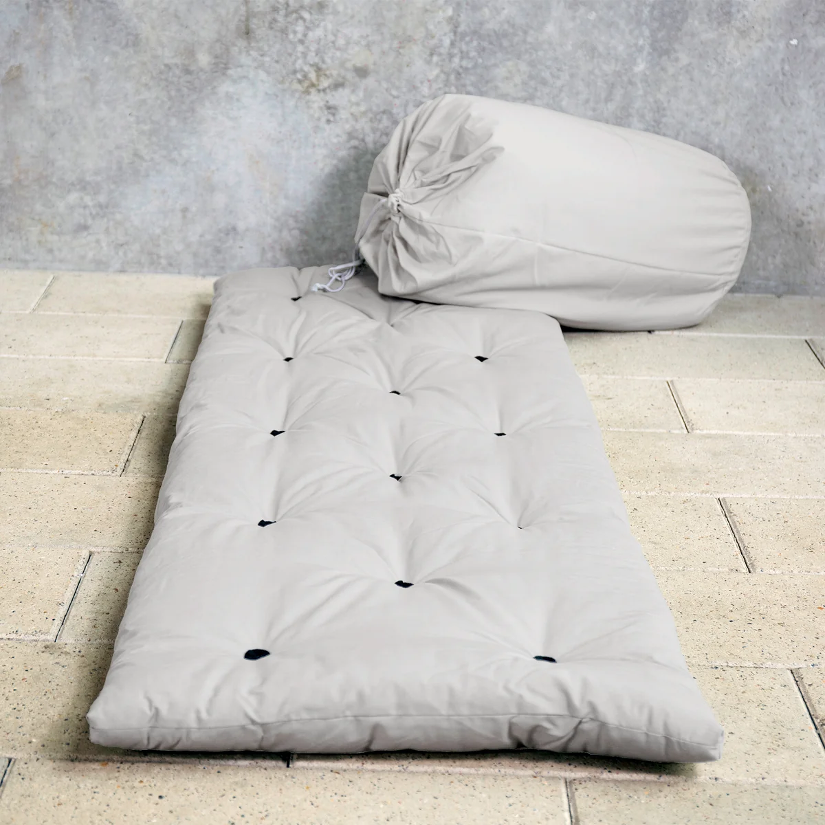 The " Bed In A Bag "Mattress from Karup Design is a simple, elegant and clever sleep solution for busy people who have little space available. The filling of the 70 x 190 cm mattress consists of a foam core and cotton. The cover, which is available in various attractive colours, is made of polyester and cotton.