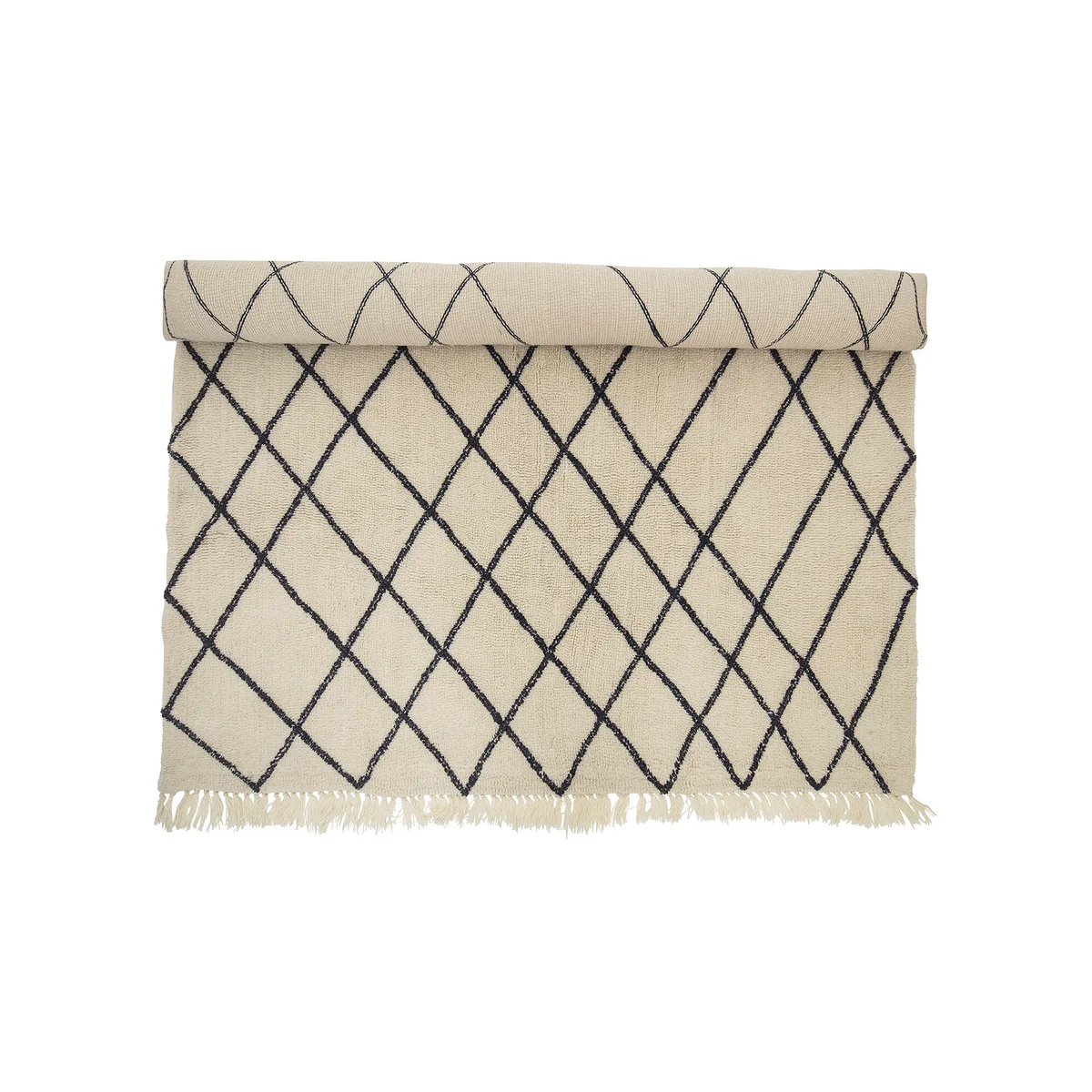 The wool carpet of Bloomingville lets the hearts of design lovers beat faster with its discreet pattern. The zigzag and diamond patterns are fully in the Berber look and are timeless and restrained, so that the rugs will give pleasure for many years.