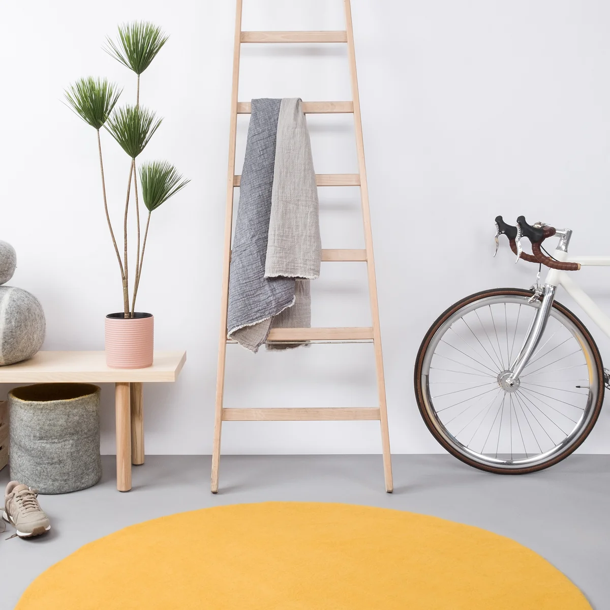 Round, plain felt carpet