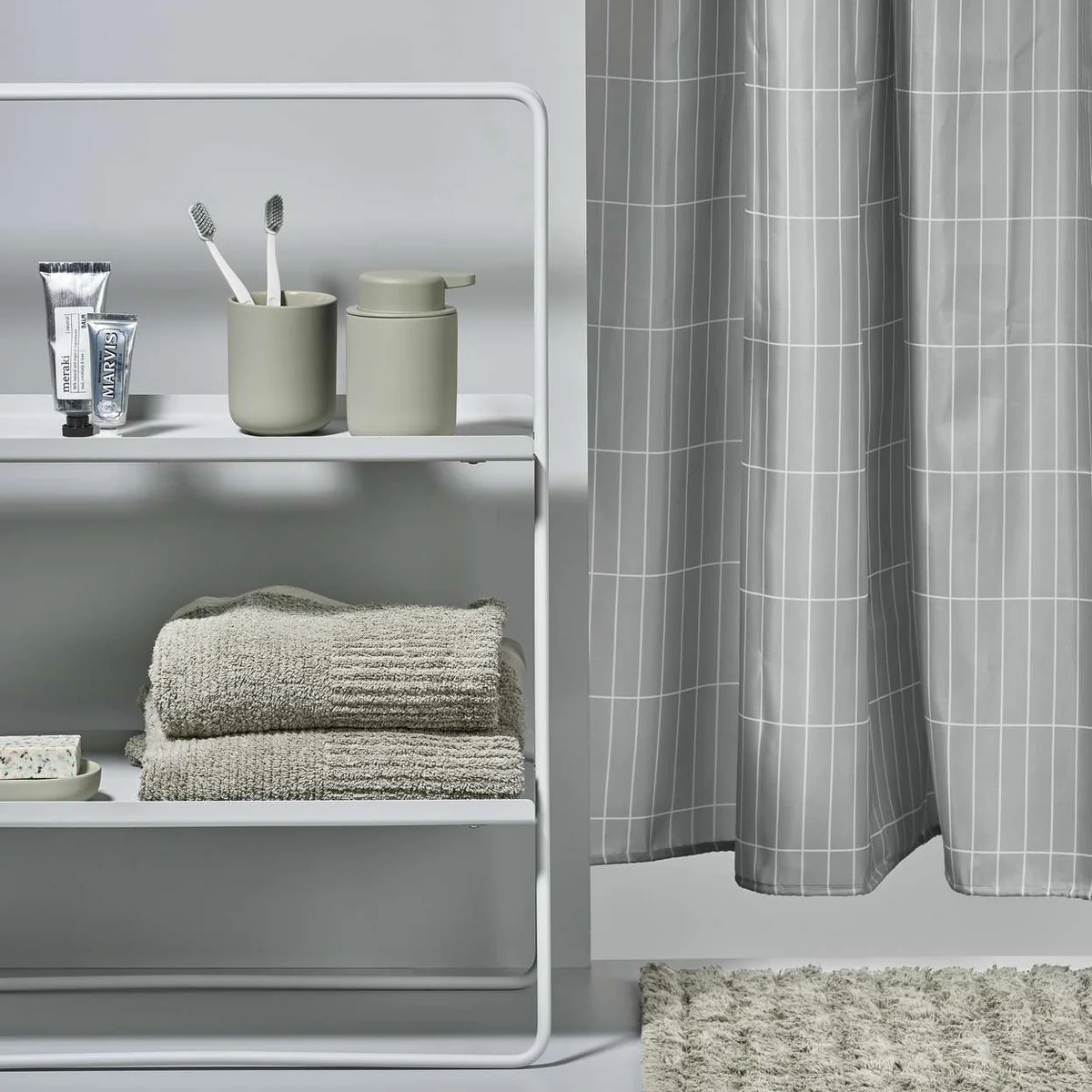 The Tiles shower curtain from Zone Denmark is a practical and stylish accessory for the bathroom. A straight-lined tile pattern characterises the design and brings a certain peace into the bathroom ambience.