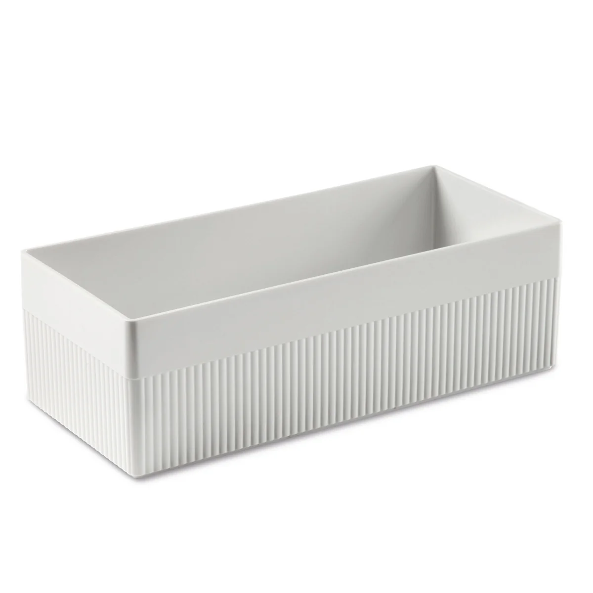 While many designers have already come up with the idea of stacking, the Kali stacking boxes go one step further. Their outer dimensions always remain the same, but the height of the rim and the depth of the contents vary. This makes it possible to always choose the right stacking box for the contents, which makes organization much easier.