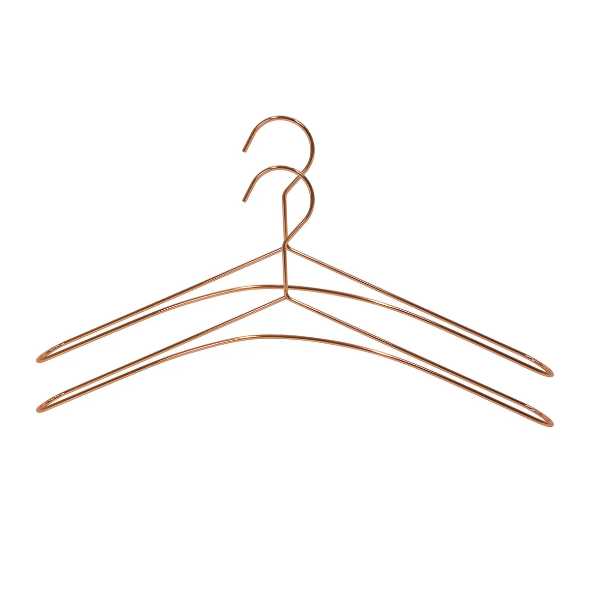 The coat hanger in a practical set of 2 is available in different colours: silver, black or copper.