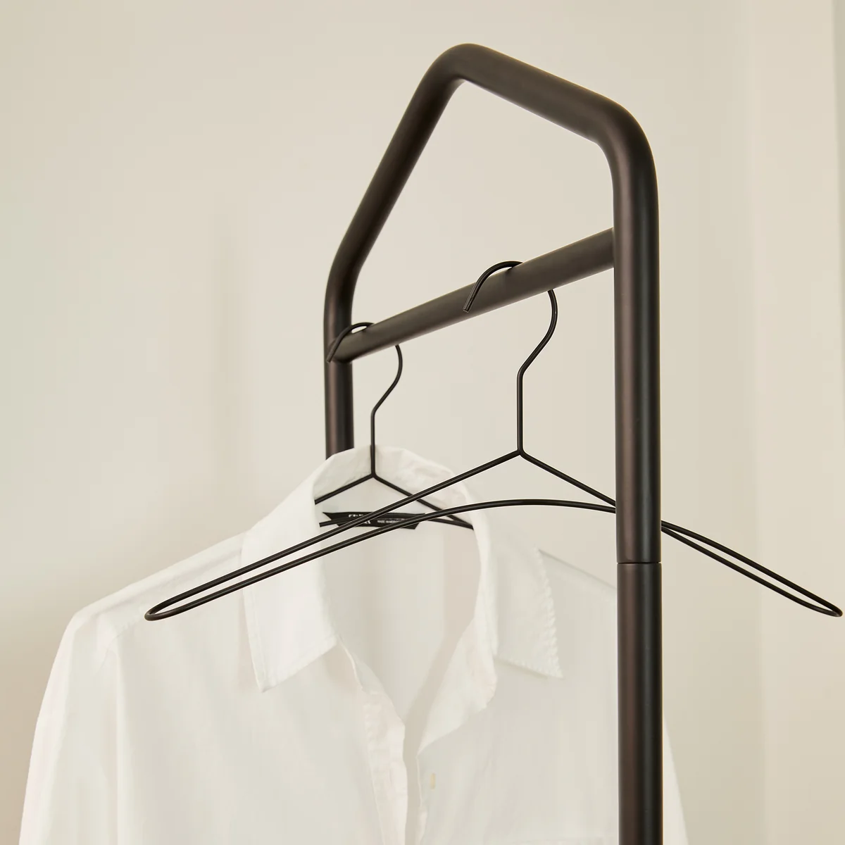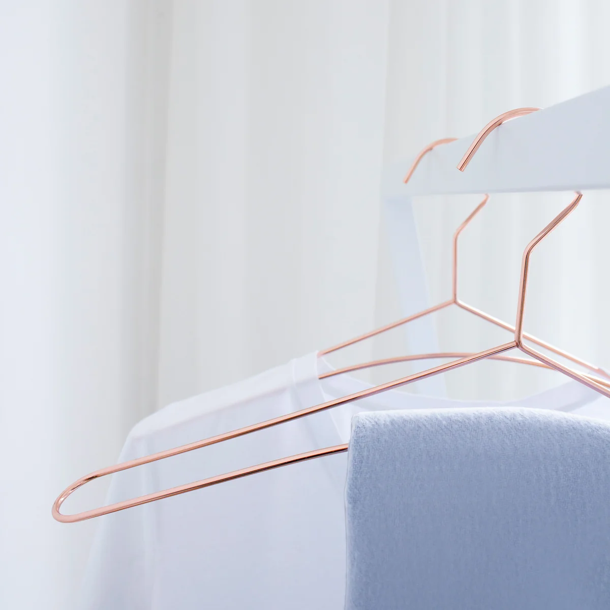 In addition to the practical advantages, the design inspires with a clear and timeless design language, so that the wire hangers can also be used in an open wardrobe or to present individual items of clothing in the store.