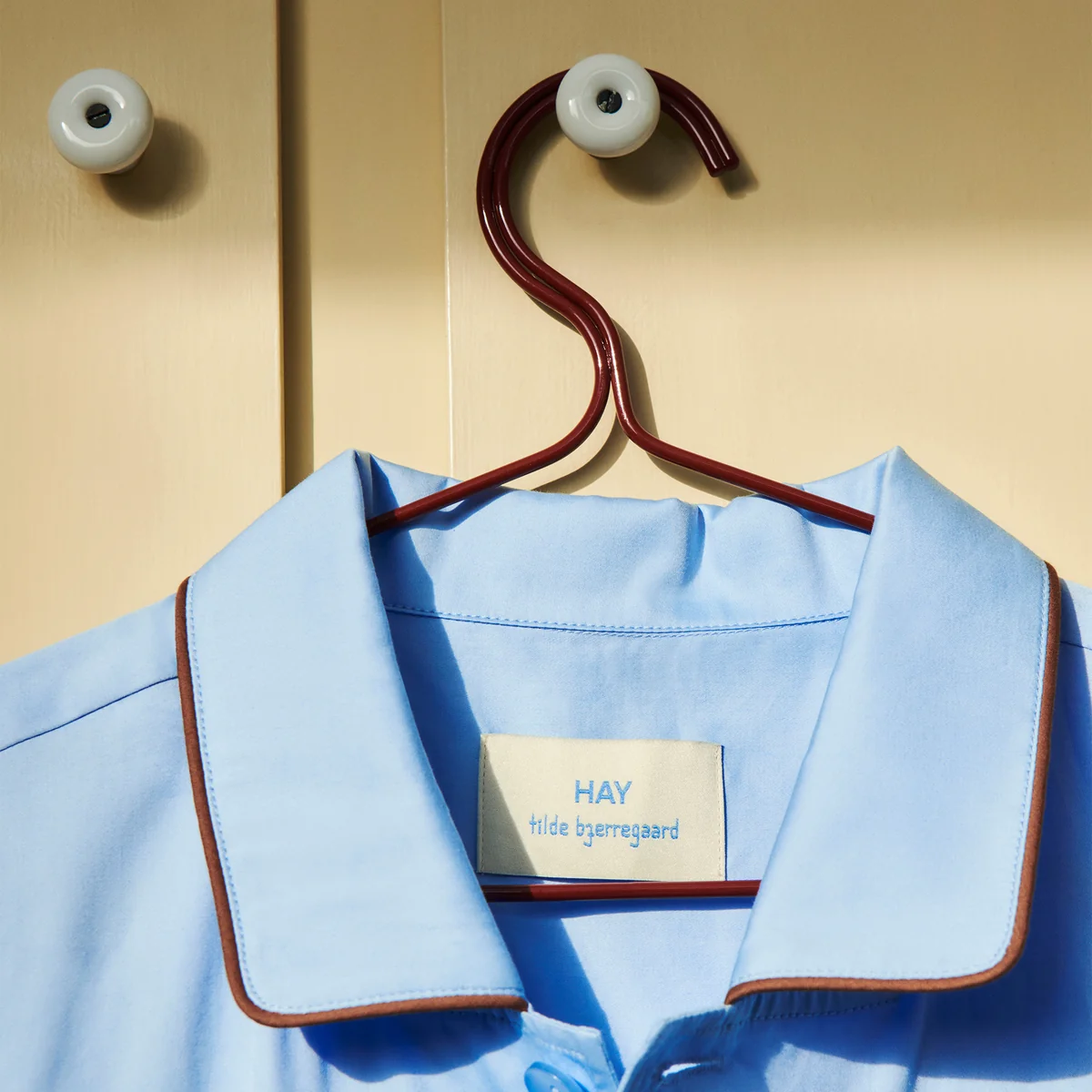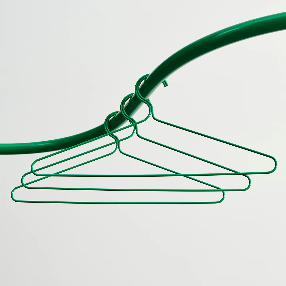 The Colour coat hanger by Muller Van Severen for HAY is a minimalist coat hanger that is characterized by its lively design. It is made of steel wire and has a hook that improves both its appearance and stability. Available in different colors, the hangers can be creatively combined with each other and are sold in sets of three.