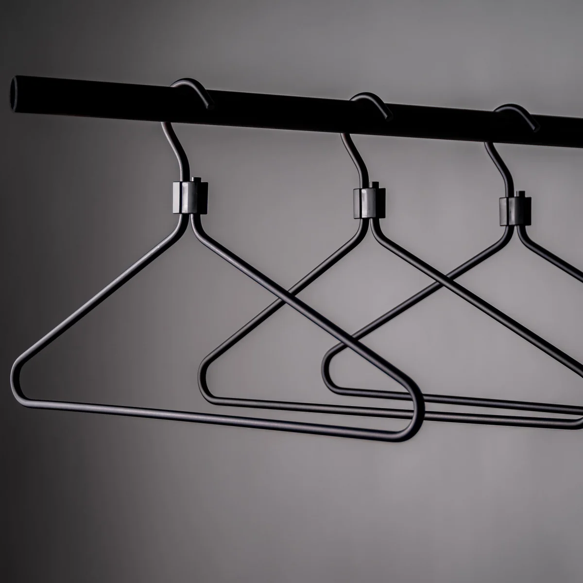 The hanger set made of aluminum and plastic is available in different versions in a variety of noble, timeless colors.
