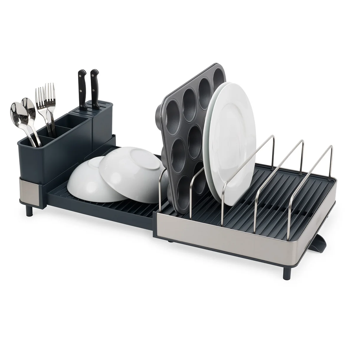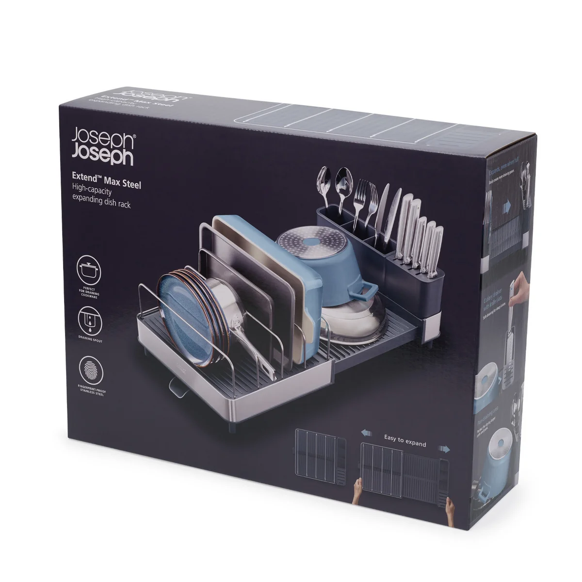 The Joseph Joseph Extend Max Steel draining basket is the ultimate solution for organizing and storing dishes after washing up. With its intelligent design, this drainer basket not only offers sufficient space for dishes, but also a variety of practical functions that make kitchen work easier.