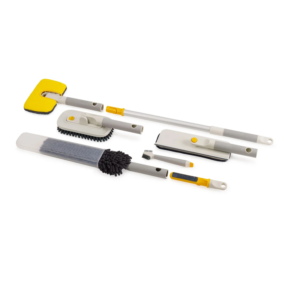 The CleanTech cleaning set offers a compact and functional solution for cleaning a wide range of surfaces - even in hard-to-reach places. It includes five sophisticated cleaning attachments and an extendable aluminum telescopic pole with a non-slip handle. The attachments can be easily exchanged using the clip-in system and can be used both by hand and with the pole. Ideal for windows, tiles, furniture, technical surfaces and narrow spaces.