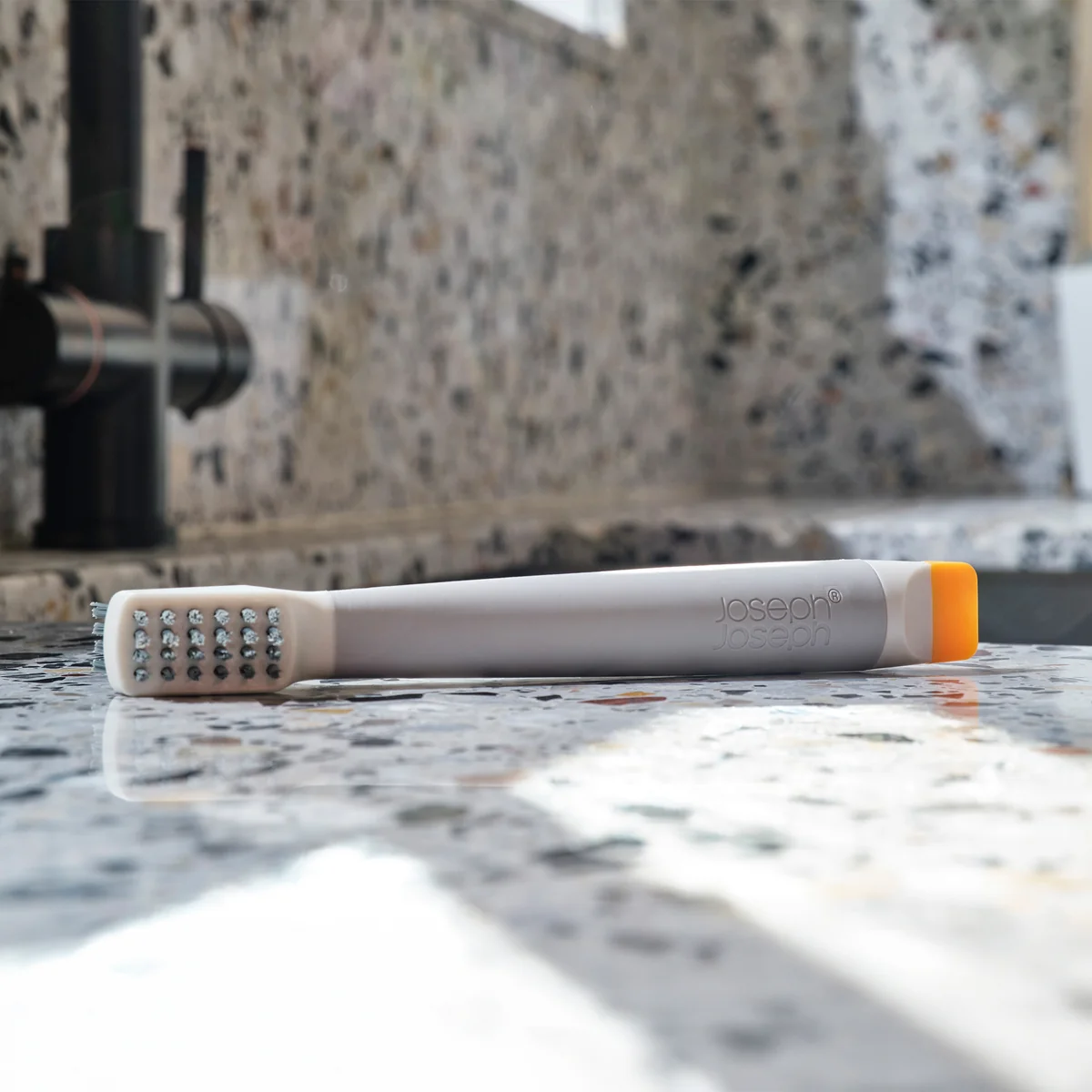 The small CleanTech cleaning brush combines three functions in one compact design: flat bristles for small areas, V-shaped bristles for cleaning joints and corners and an integrated scraper at the end of the handle for removing stubborn limescale and dirt deposits. Ideal for precise cleaning in tight areas such as around taps, joints or gaps in kitchen appliances. The ergonomic, non-slip handle sits comfortably in the hand and enables targeted work, even for difficult cleaning tasks.