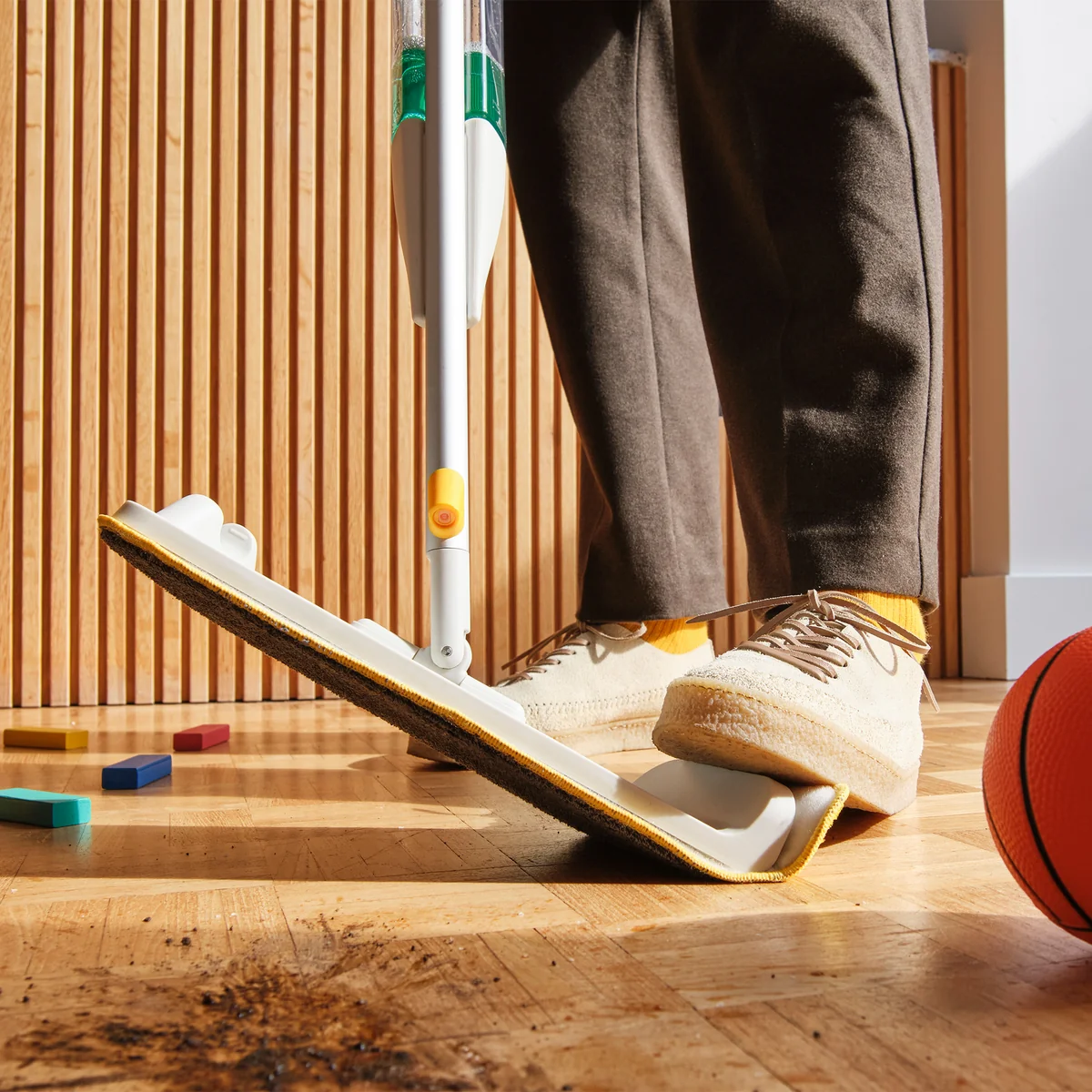 - Rotating mop head & Scrubbing pad for hard-to-reach areas and stubborn dirt