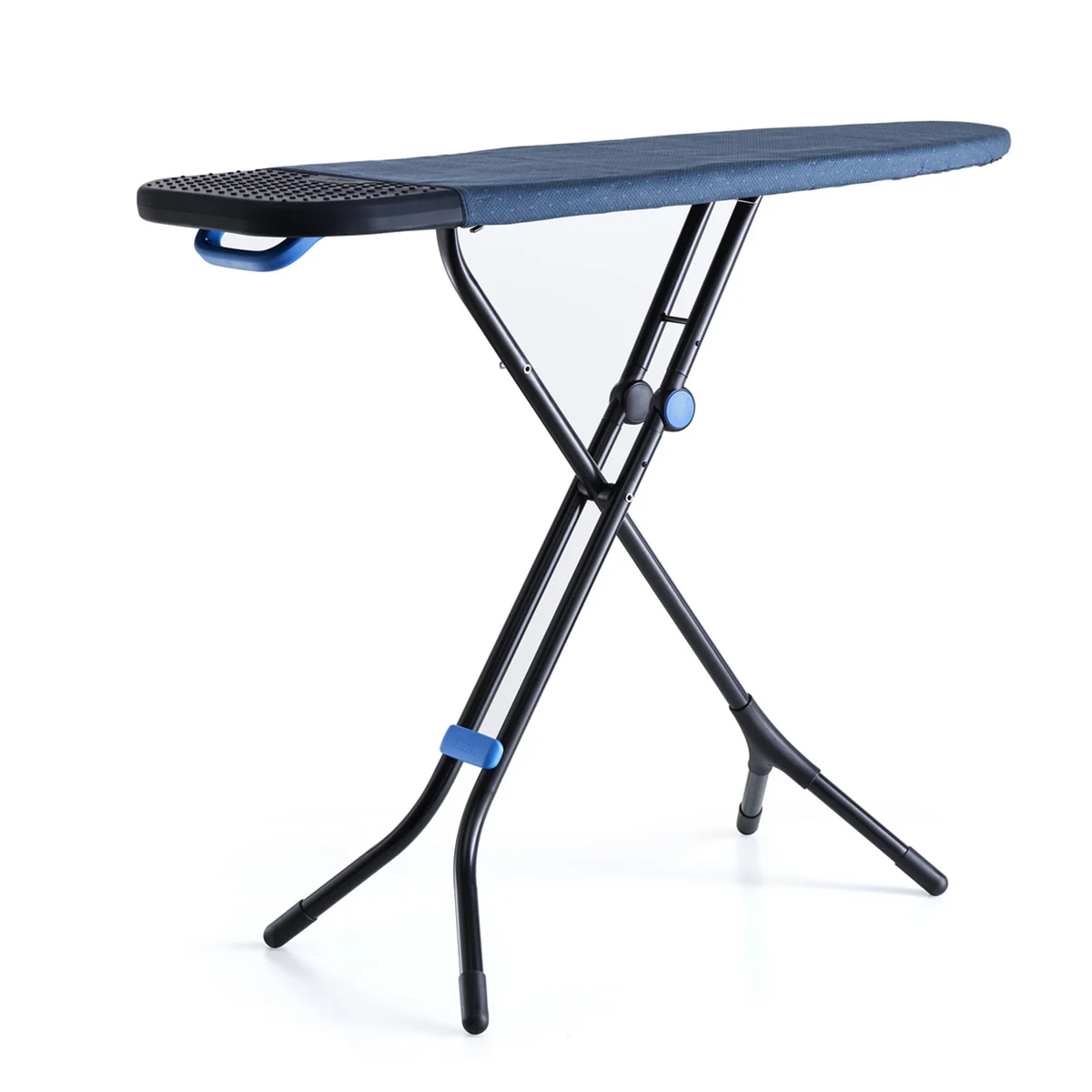 When folded, the innovative folding mechanism ensures that both feet at the end of the board rest within each other. This reduces the likelihood of getting caught anywhere when removing from the cupboard. A large handle on the back also makes it easier to carry and, in combination with the integrated holder, serves as a secure hanger.