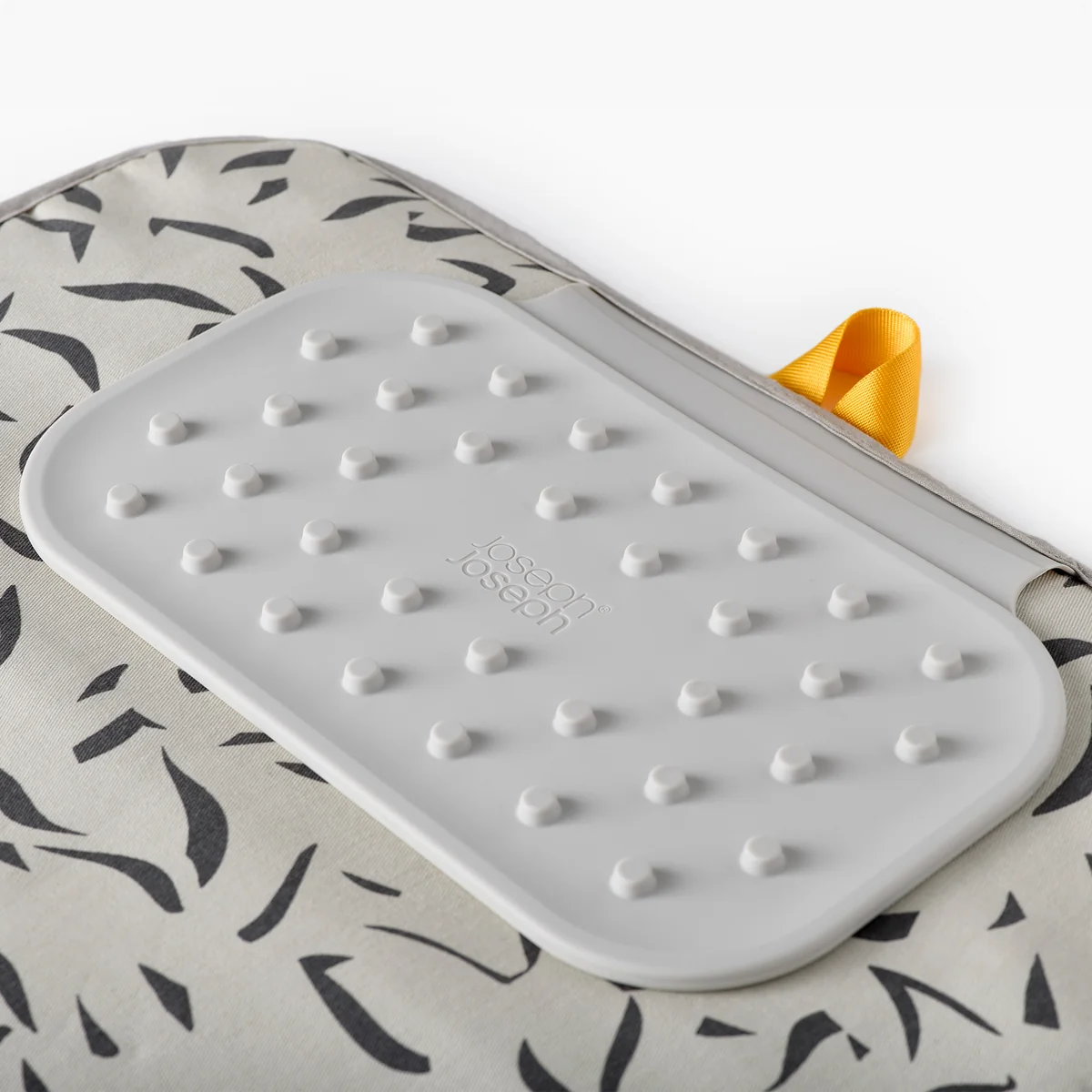 The Swift ironing mat from Joseph Joseph transforms any flat surface into a practical ironing station. The heat-resistant mat is lightweight and flexible and can be easily rolled up and stored away when not in use. With its special silicone surface, it protects tabletops and work surfaces from heat while providing a non-slip ironing surface for efficient ironing. Ideal for quick use and small spaces.