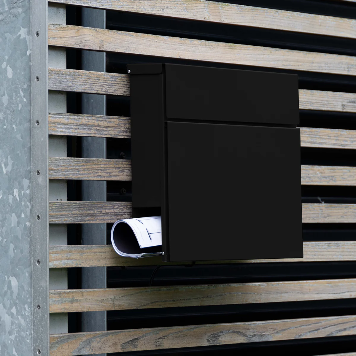 The letterbox Letterman VI with newspaper roll by Michael Rösing for the manufacturer Radius Design is an absolutely modern, functional eye-catcher. The timeless design fits wonderfully simple in its environment and invites guests into the house with its great aesthetics. The mailbox has a newspaper compartment, which is ideal for storing rolled magazines or daily newspapers.