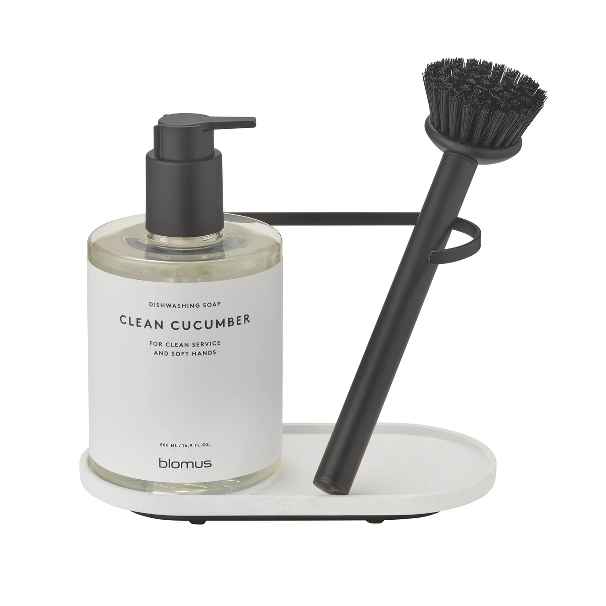 The powder-coated metal frame serves as a holder for dishcloths, while the Arja dishwashing brush with replaceable brush head included in the set impresses with its durability and elegant design. The powder-coated stainless steel brush handle sits comfortably in the hand - ideal for everyday use.