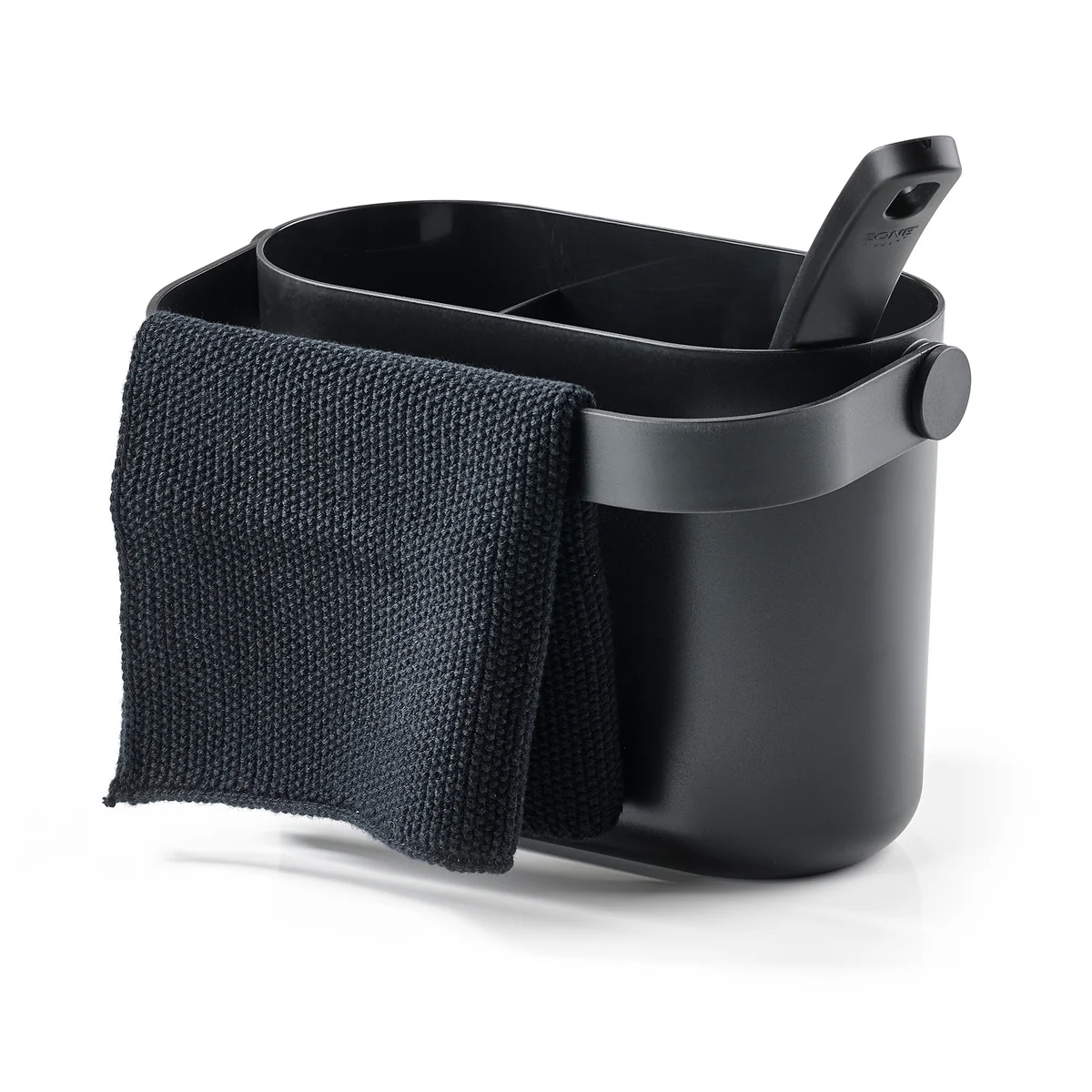 The Circular Dishwashing set from the Danish manufacturer Zone Denmark makes everyday kitchen life easier in a neat way. The set includes a brush, a dish towel and a tray. Circular Can be placed in three positions; upright for carrying, tilted forward to hang and dry the dish towel, or tilted back to save space. The shelf is wonderful for storing a personal choice soap dispenser. Particularly suitable is the Ume soap dispenser .