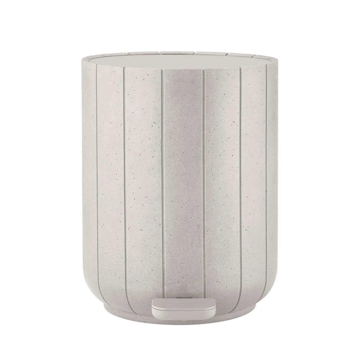 The inner bucket can be easily removed for emptying. The lid closes flush with the housing and underlines the clear, modern look. The pedal mechanism opens the bin hygienically, while the soft-close function ensures that it closes quietly and gently. Made from recycled polyresin, the pedal bin is manufactured in a particularly resource-friendly way. The inner elements such as the bin and lid are made of robust plastic. Together with the Kua toilet brush , it makes a harmonious set for a sophisticated and stylish bathroom.