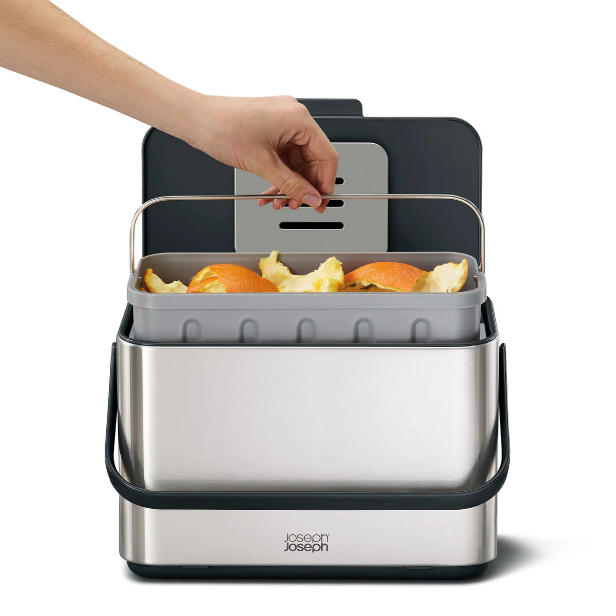 The Joseph Joseph Collect waste garbage can combines style and functionality and offers an innovative solution for tidiness and cleanliness in the kitchen. With its sleek and modern design, this waste garbage can fits perfectly into any kitchen interior and also ensures efficient waste sorting.
