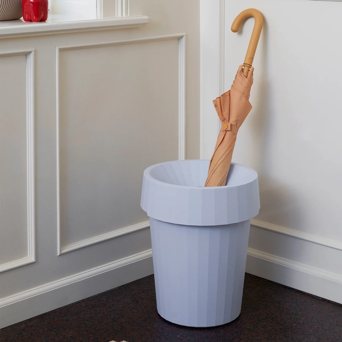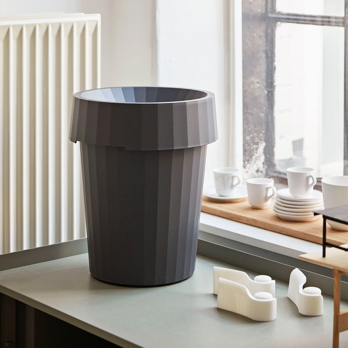 The Shade Bin by HAY was designed by Thomas Bentzen and convinces with its clear and distinctive silhouette. The waste bin is made of durable polypropylene with a matching lid and is available in different colors. Its corrugated exterior makes the trash can with a capacity of 14 l appear decorative and looks great under the desk, in the children's room, in the bathroom and also in the kitchen. Thanks to its different colors, it blends in well with any environment.