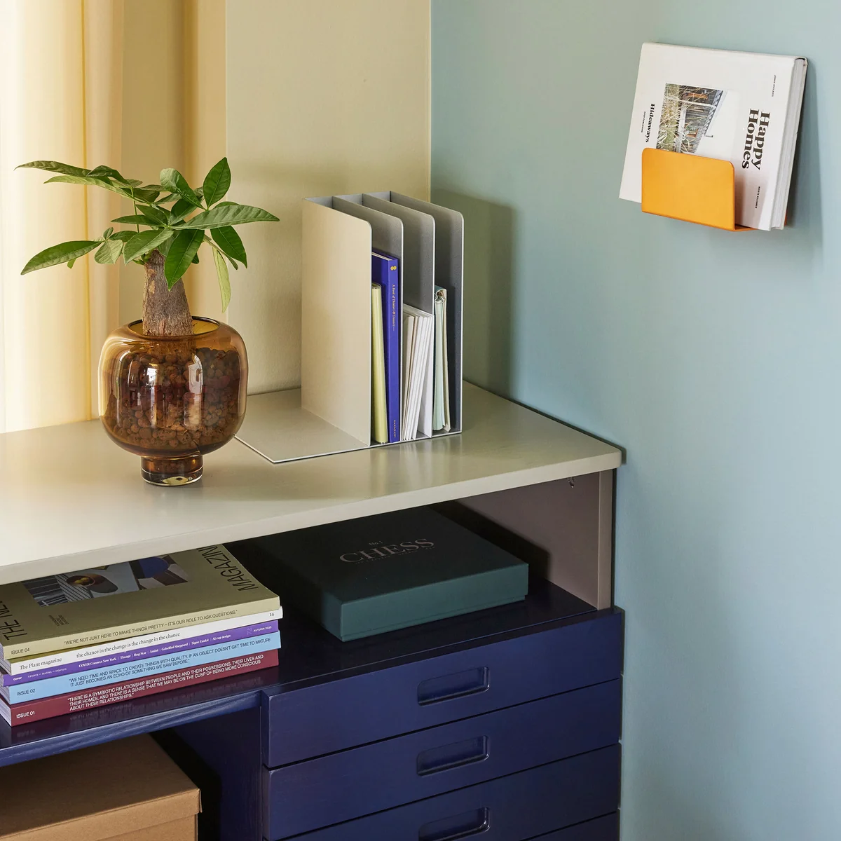 The File Organizer - the ultimate storage solution for the office! Made of sturdy metal with a sleek steel look, this organizer combines functionality and style. Thanks to its versatile uses, it can also be used as a book stand to keep your desk tidy and books easily accessible.
