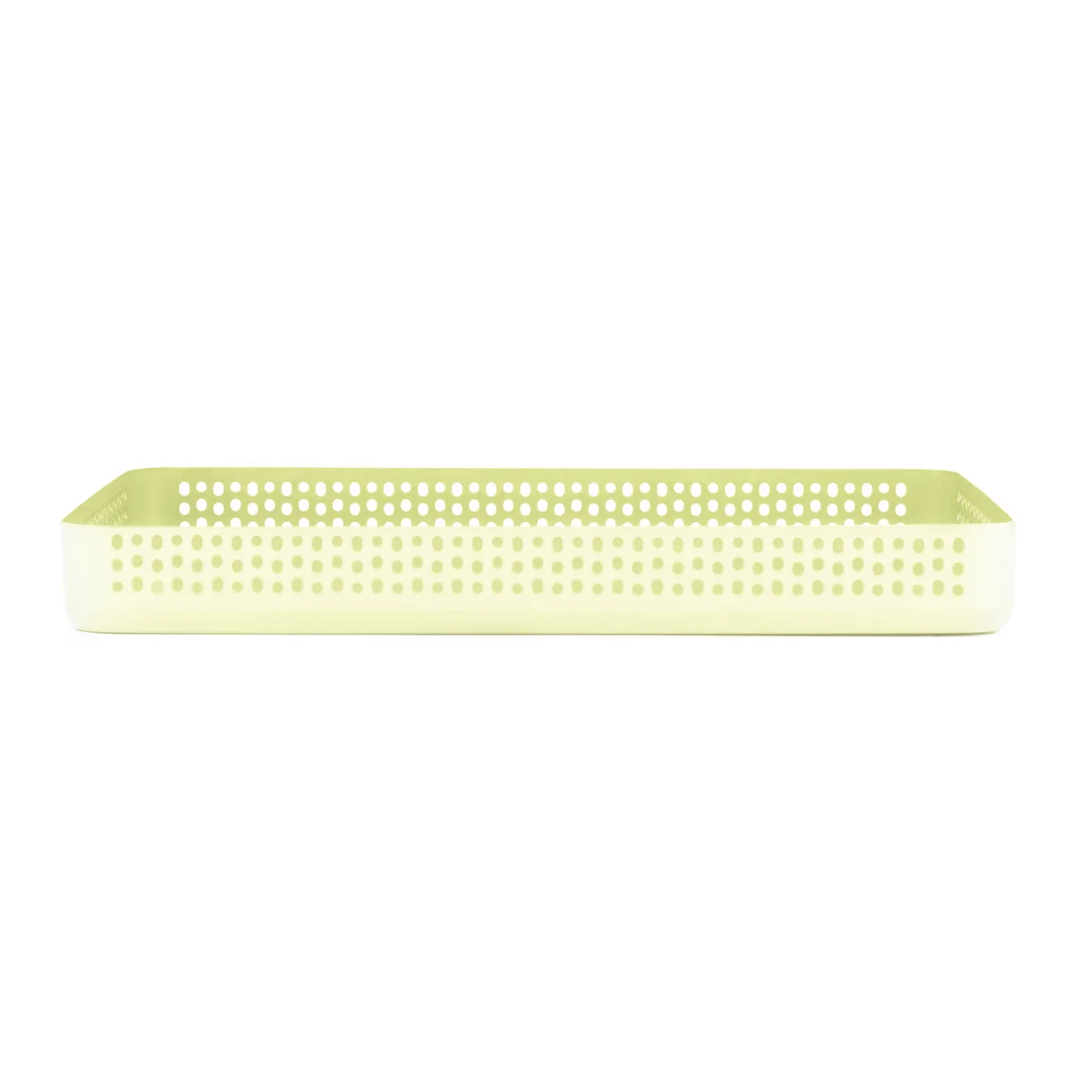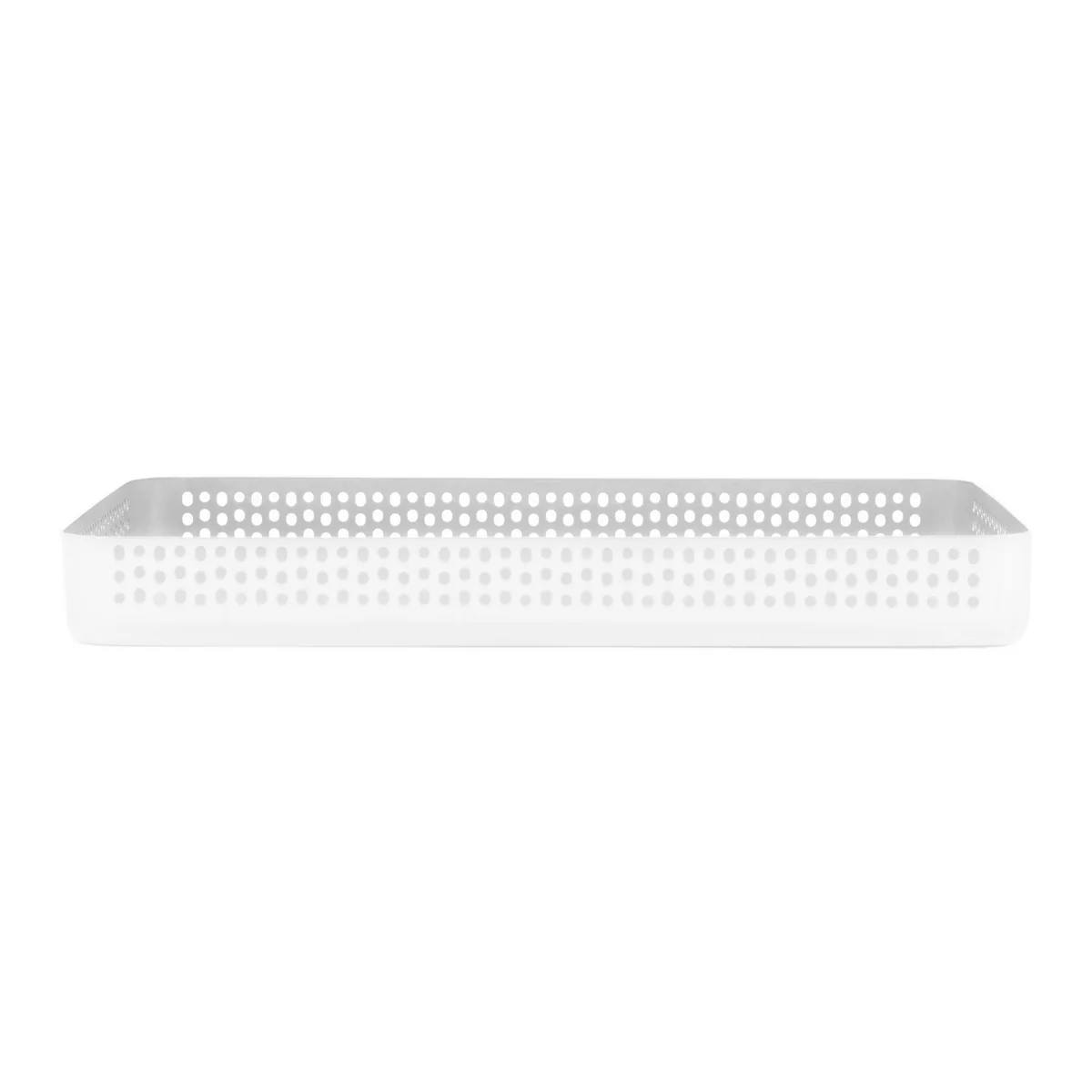 The Nic Nac Organizer 34 x 23 cm consists of powder-coated steel in various colours. For Hansen, it was important to get the interaction between the proportions and the thin edges right. In order to add lightness and dynamics to the design, he created a perforated pattern. That makes Nic Nac more domestic in appearance. Ann interplay that creates curiosity is created by the shadow and camouflage effect.