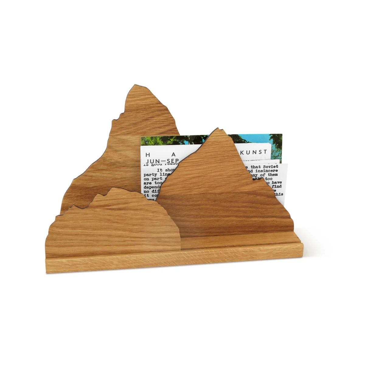 Notes, flyers or letters between three mountains, that is the Zettelherberge . The designer mountains made of tinted walnut veneer serve as a storage place for pieces of paper that would otherwise just fly around somewhere: as a beautiful eye-catcher on the desk, the hallway or on the kitchen shelf - just wherever you like to accumulate things. The note collector was designed Zettelherberge by the designers Matthias Lehr and Myong ae Kyong
