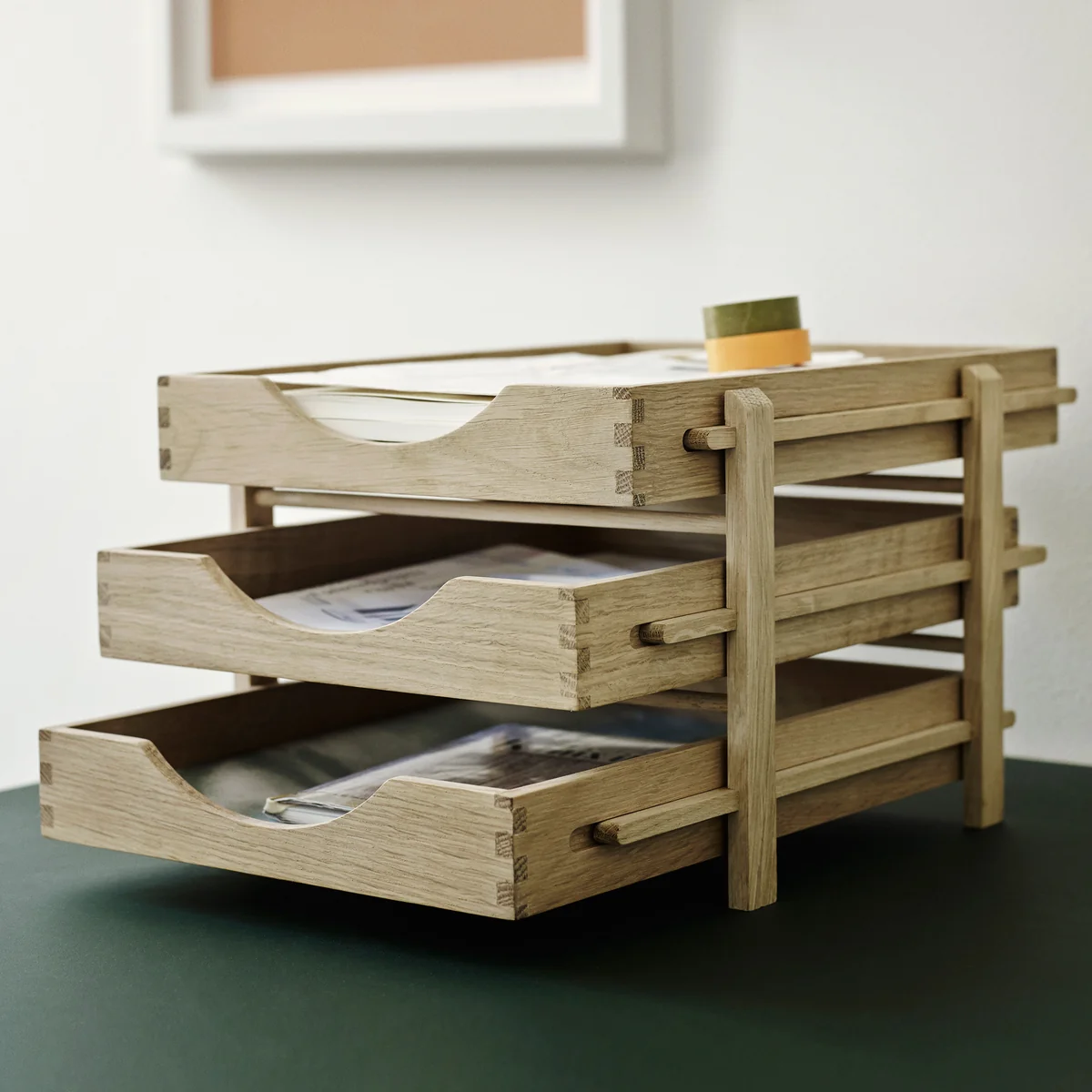 The Dania letter tray is made by Skagerak from FSC® certified solid oak wood. The individual drawers pull out to allow better access to the documents in the filing box. These classic but key features make the Letter Tray stand out from other wooden organizers.