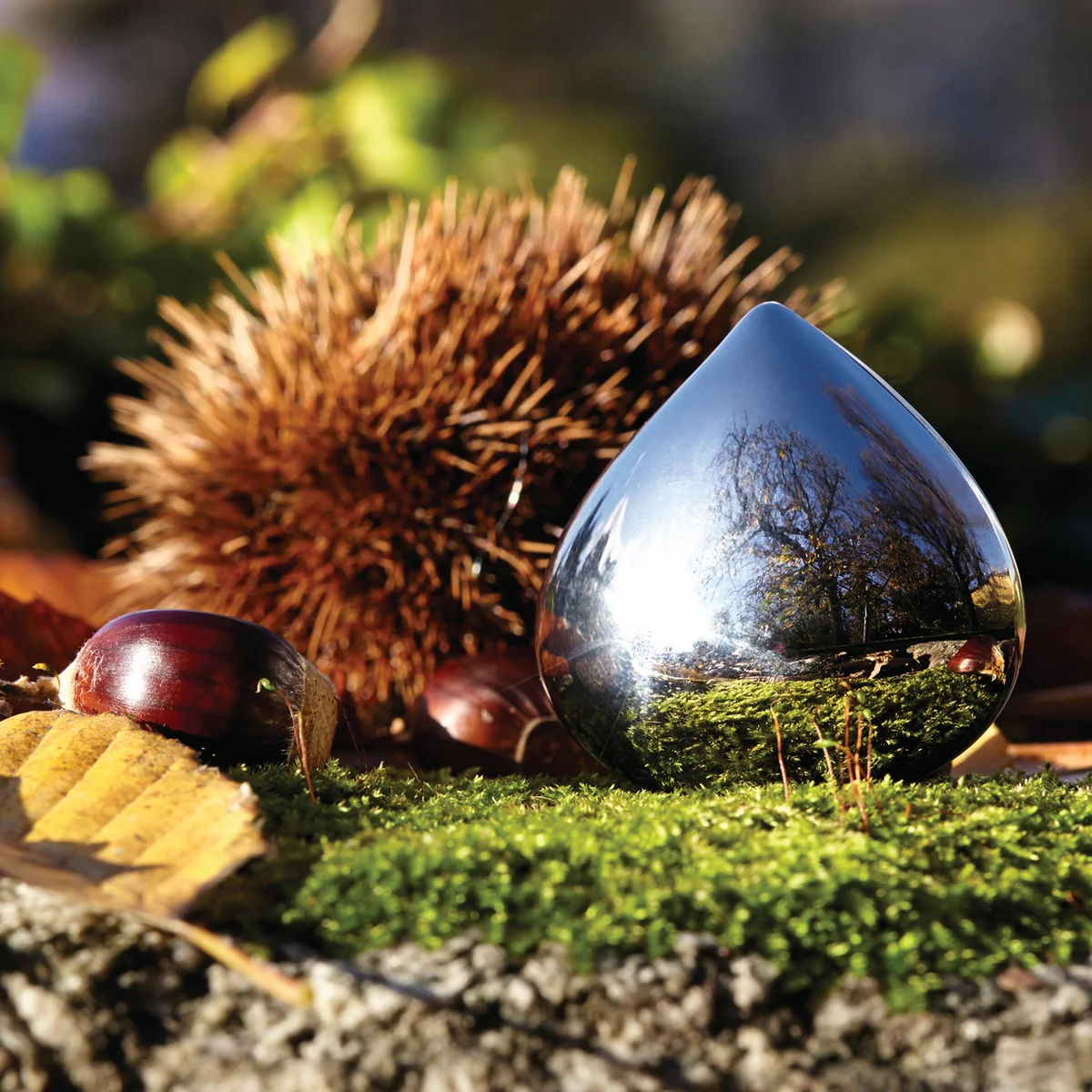 The designers Lorenza Bozzoli and Gabriele Chiave designed the Chestnut pillbox inspired by the Italian popular belief that a horse chestnut buckeyes protects against colds.