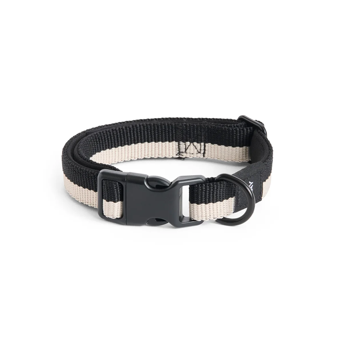 The Dogs dog collar made of robust, recycled polyester is equipped with an adjustable buckle and has additional padding for more comfort. The collar is available in different sizes and features various stripe designs.