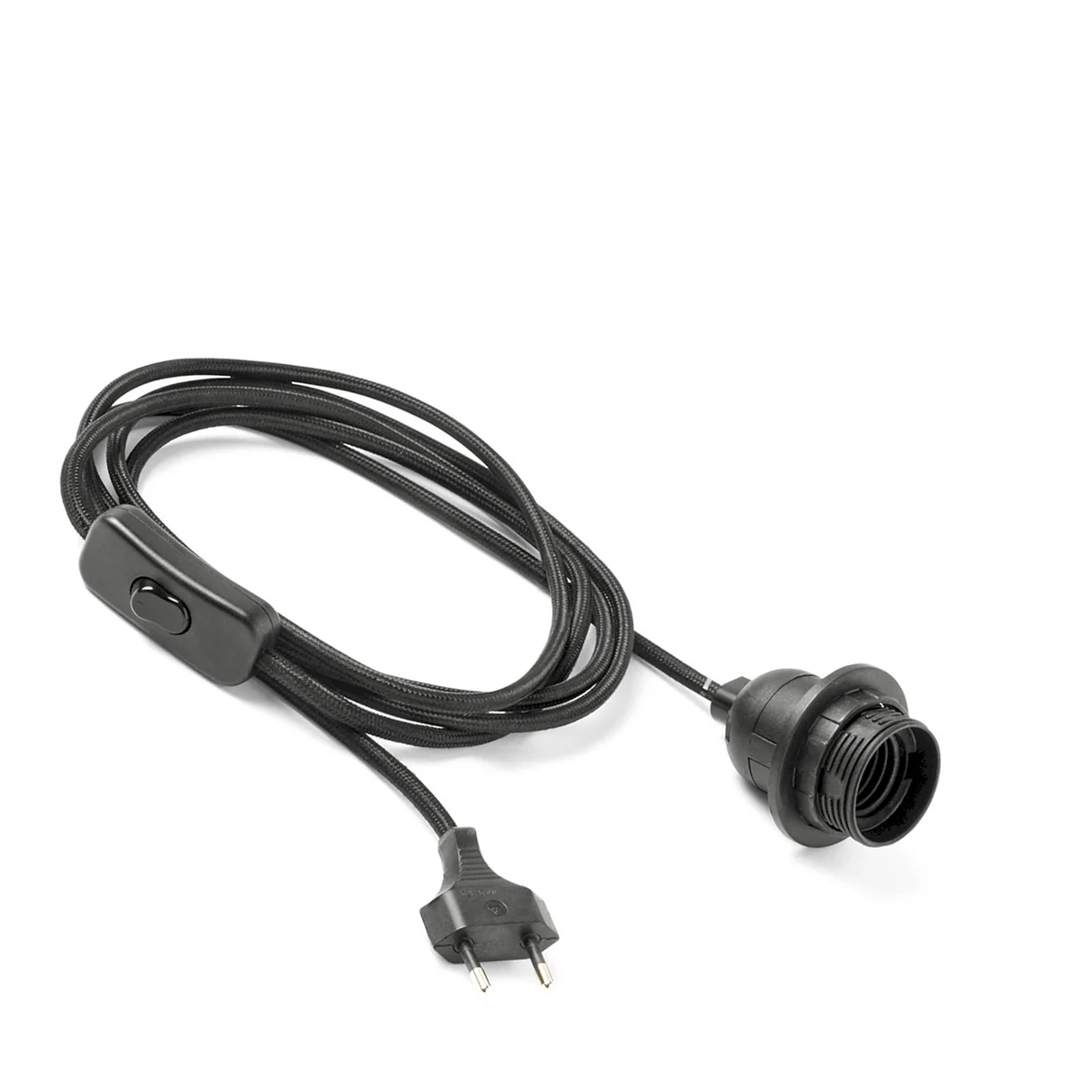 The cable set for table lamps is equipped with a plug and a toggle switch. The textile cable is 2m long. Both versions have an E27 socket.