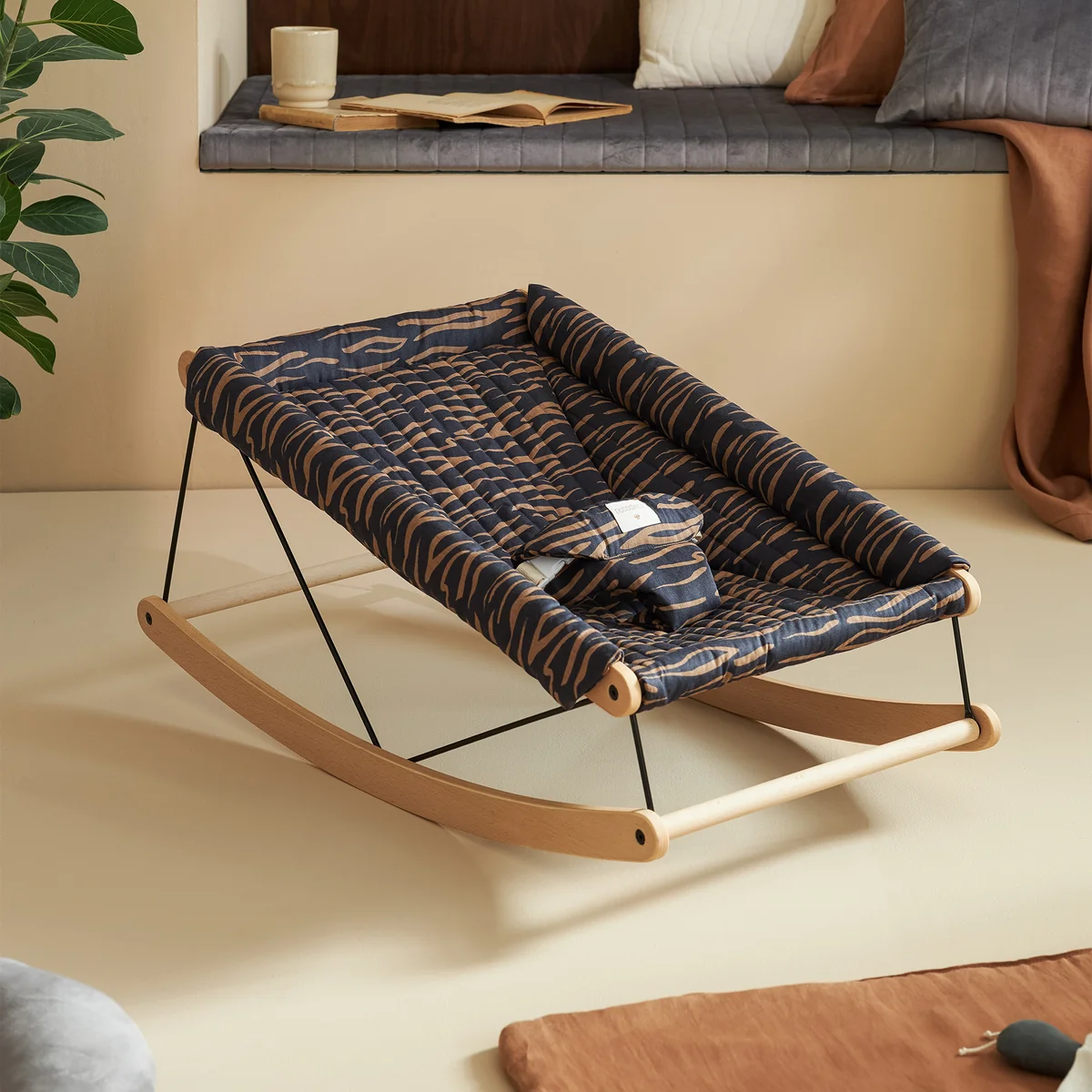 The Growing Green cushion for baby bouncer by Nobodinoz is the advanced furniture collection for children, characterized by a refined design and made of natural materials. The baby bouncer can be easily customized with interchangeable colors. There is a choice of stunning prints that blend seamlessly into the interior.
