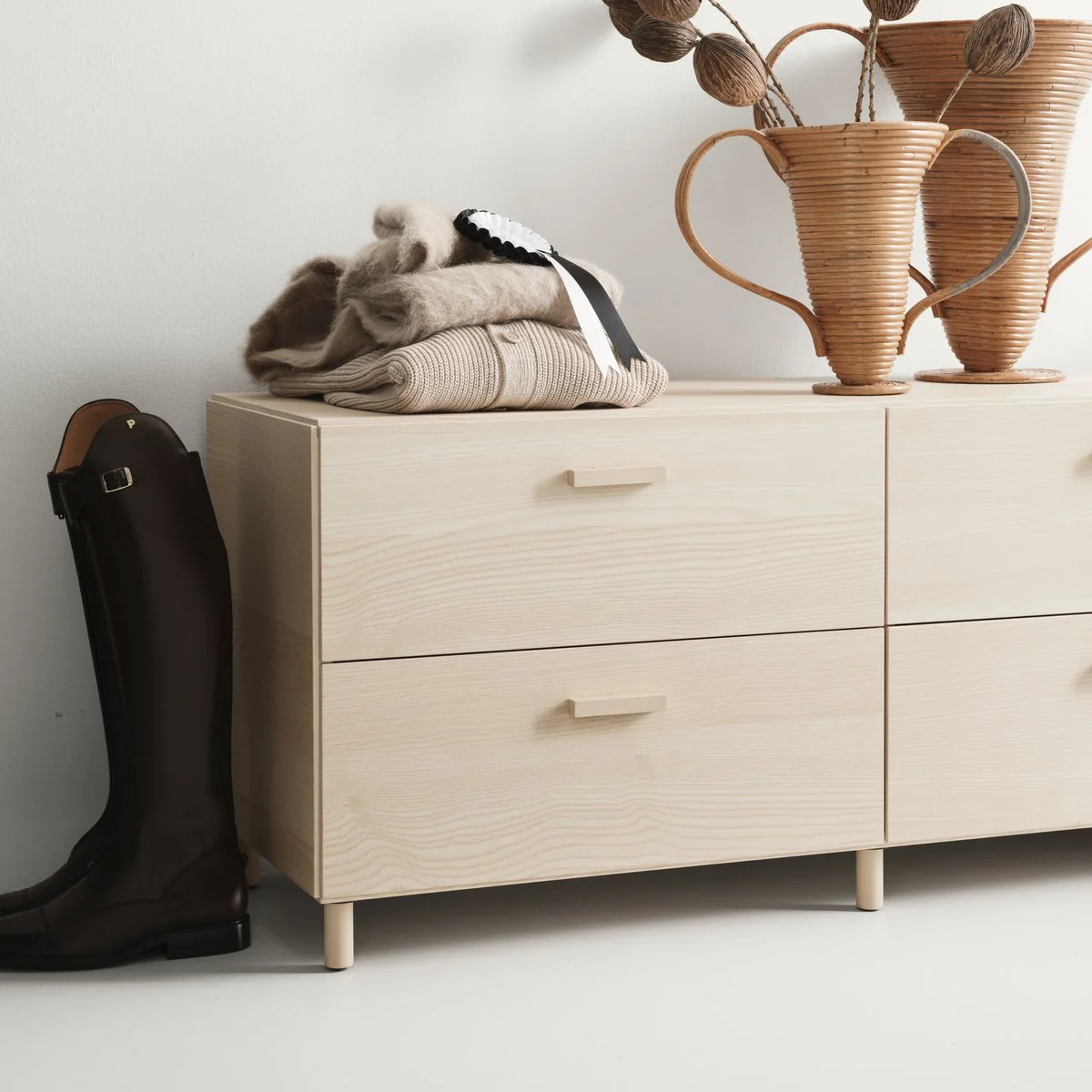 The Relief connecting legs from String not only provide solid stability for chests of drawers Relief chests of drawers, but also create stylish accents in any living space. Made from high-quality, powder-coated aluminum, they combine robustness with modern aesthetics. The relief-like structure gives the connecting legs a special touch and makes them an elegant element in the room. Thanks to their ingenious design, they ensure a reliable connection between the chests of drawers, while at the same time creating a harmonious transition between the individual elements. The Relief connecting legs from String are not only functional components, but also stylish details that perfectly round off the overall look of the chests of drawers. Relief chests of drawers perfectly.
