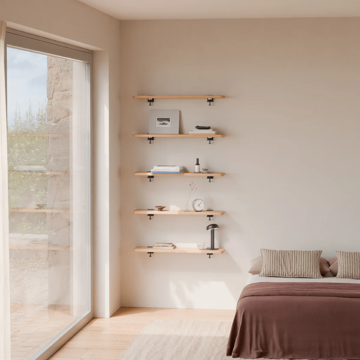The Bracket wall bracket from French manufacturer TipToe is ideal for attaching table tops or shelves to a wall. In combination with table legs and a wooden top, you can conjure up an individual bar table, high side table or shelf that brings a slightly industrial flair to the kitchen or living room. What's more, the designer wall bracket is made from sustainable materials in Europe and is therefore extremely durable and stable. Conveniently, it simply needs to be clamped to the edge of a wooden panel and screwed to the wall.