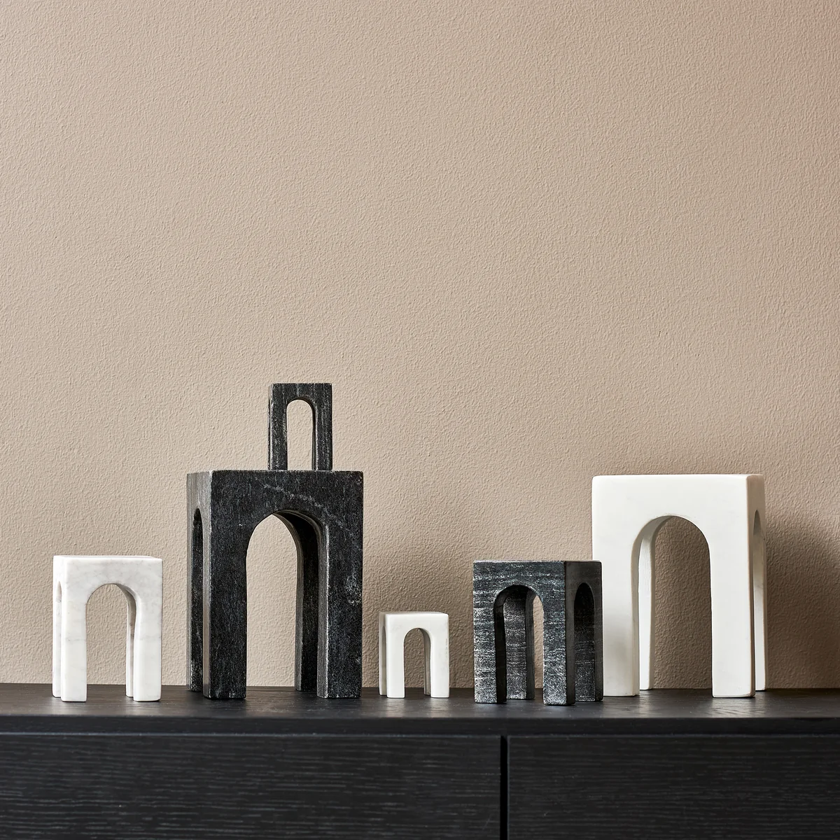 The Arkis bookend from Gejst is not a classic bookend. It consists of three marble objects, which shine through their sculptural form as art objects. Arkis So it not only keeps books in place, it is also ideal for decoration on a shelf, a commode or in the windowsill.