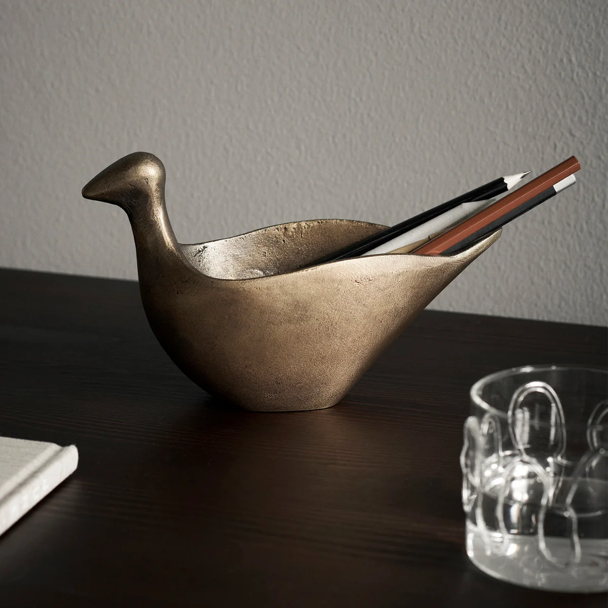 The Coot Pen Holder by Ferm Living is a unique and eco-friendly accessory that combines the functionality of a pen holder with creative design in a very special way. Made of recycled cast aluminum in the shape of a water chicken, this pen holder embodies a harmonious combination of sustainability and art. Its original design adds a playful touch to any room while making it an eye-catcher. The Coot Pen Holder is not only a practical tool to keep writing utensils handy, but also a work of art that inspires conversation. This combination of environmental awareness and creative design makes it a symbol of sustainable home decor and underscores Ferm Living's commitment to eco-friendly products. With the Coot Pen Holder you can not only organize your stationery, but also make a statement for recycling and sustainable design aesthetics.