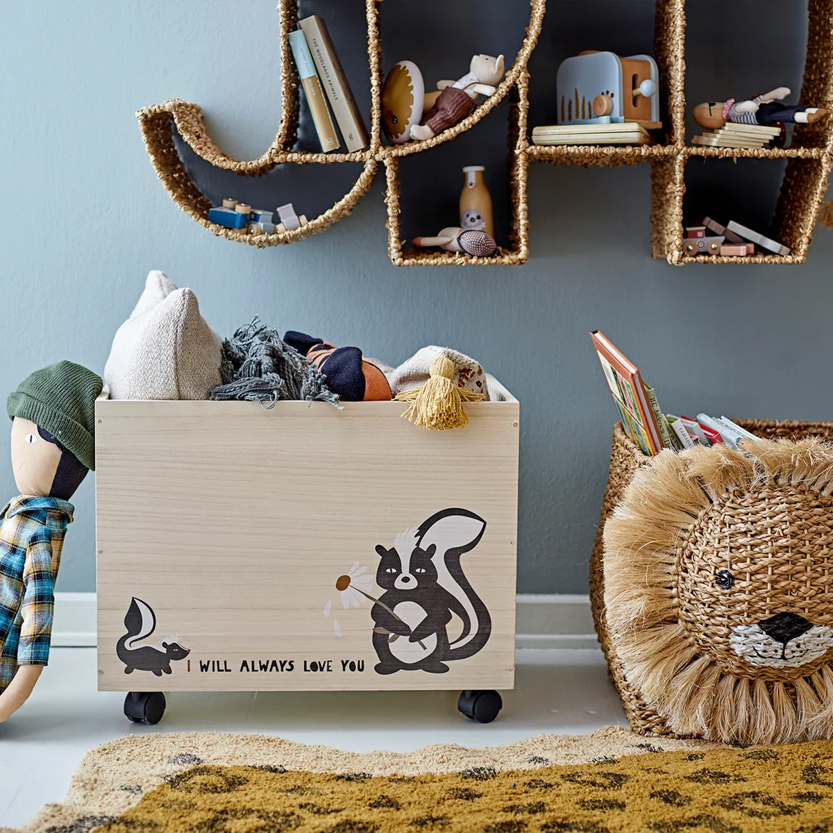 As a practical accessory for the children's room, the Harrison storage basket from Bloomingville presents itself with a cute lion's head. Toys, clothes, books and all kinds of other little things can be stored in the basket made of Bankuan grass. All important things can be neatly stored and protected by the lion.